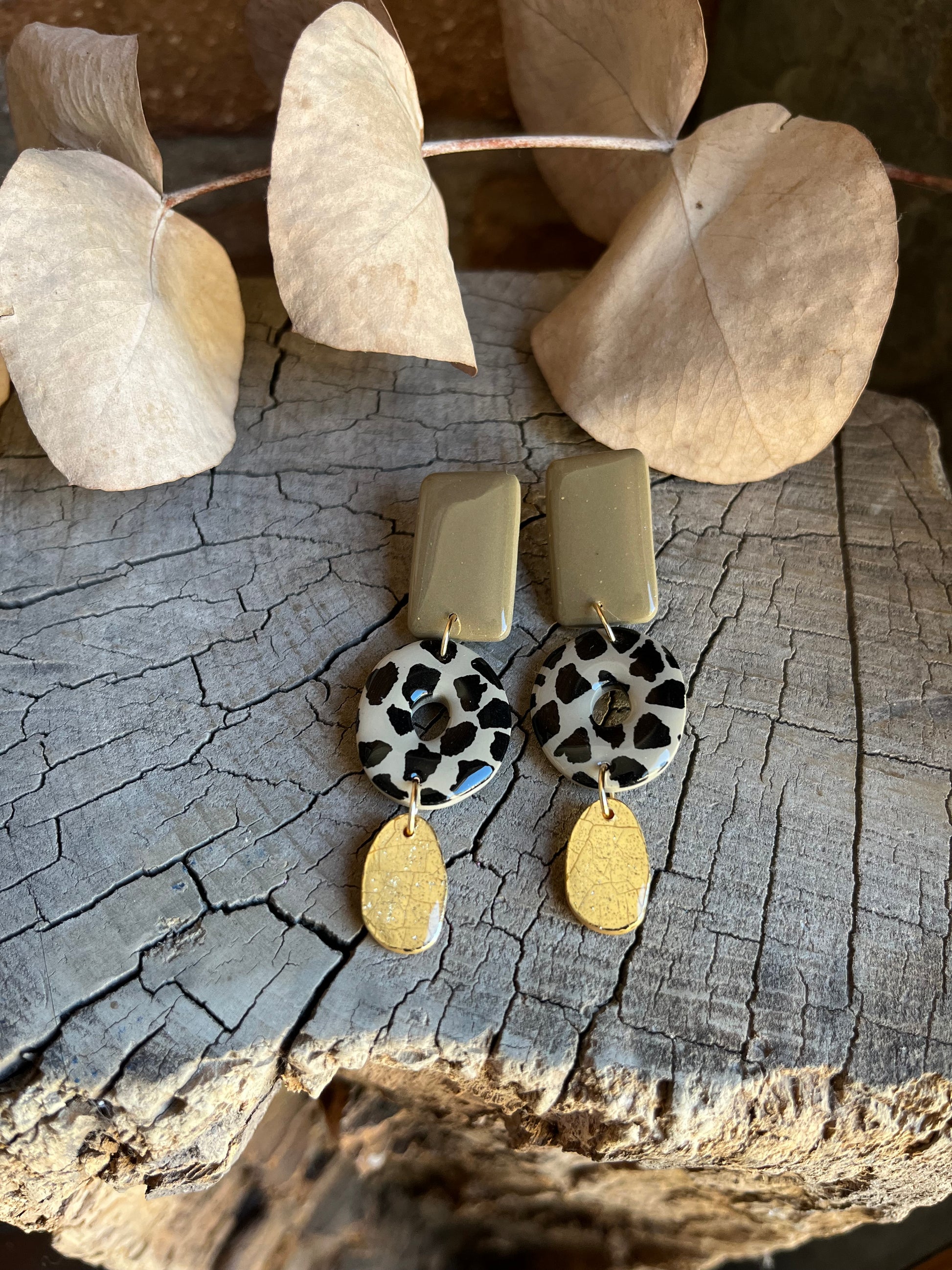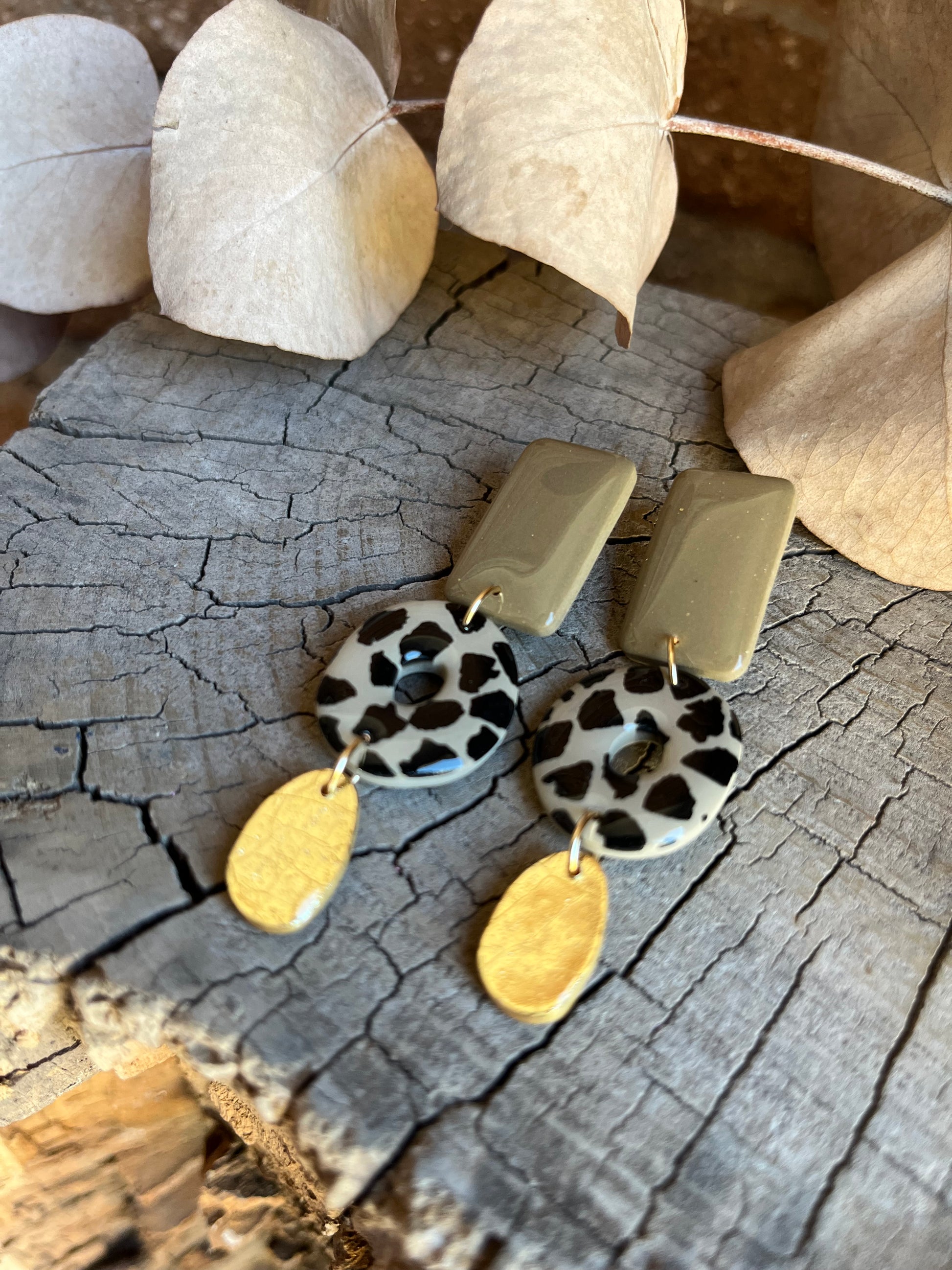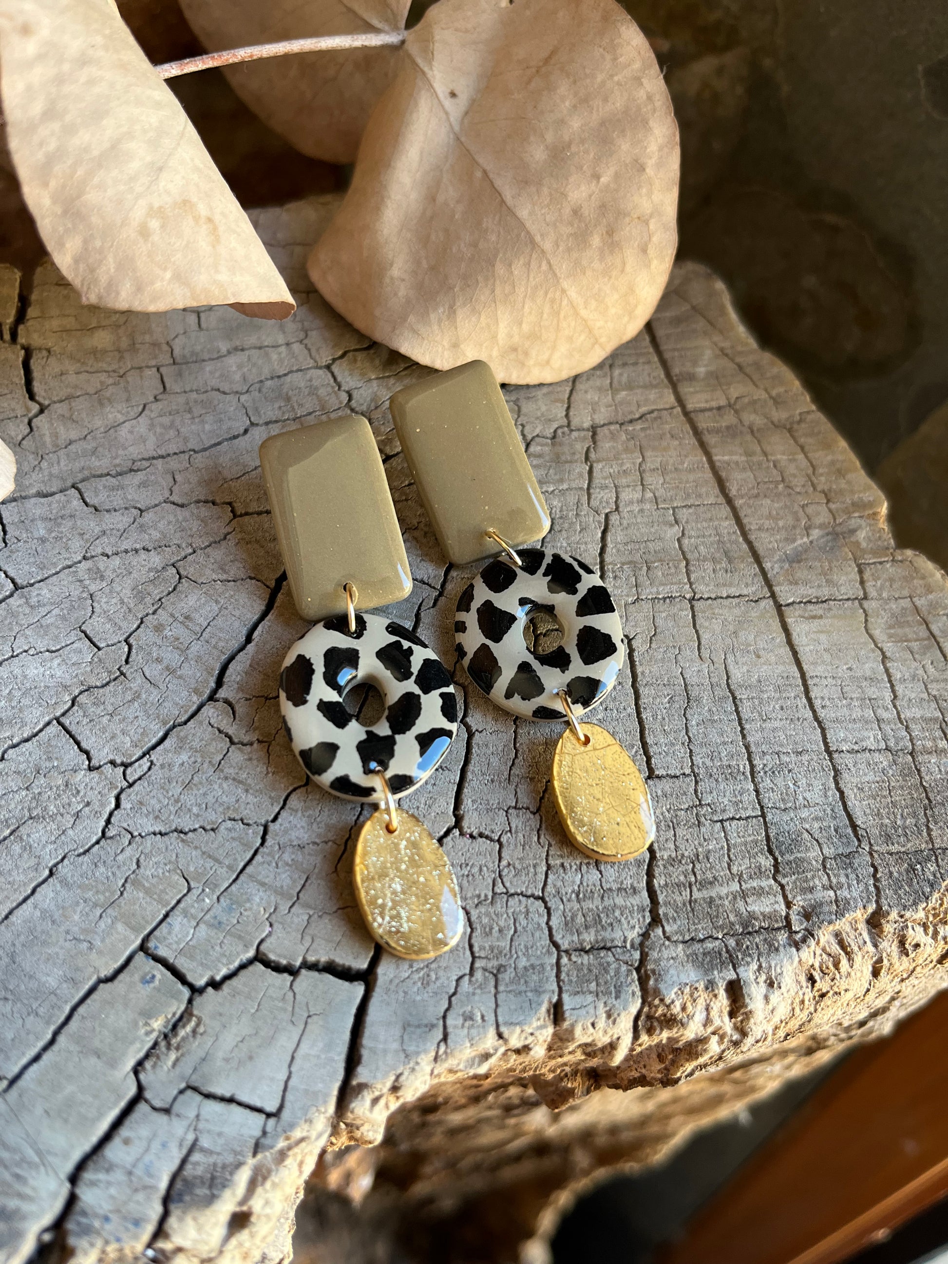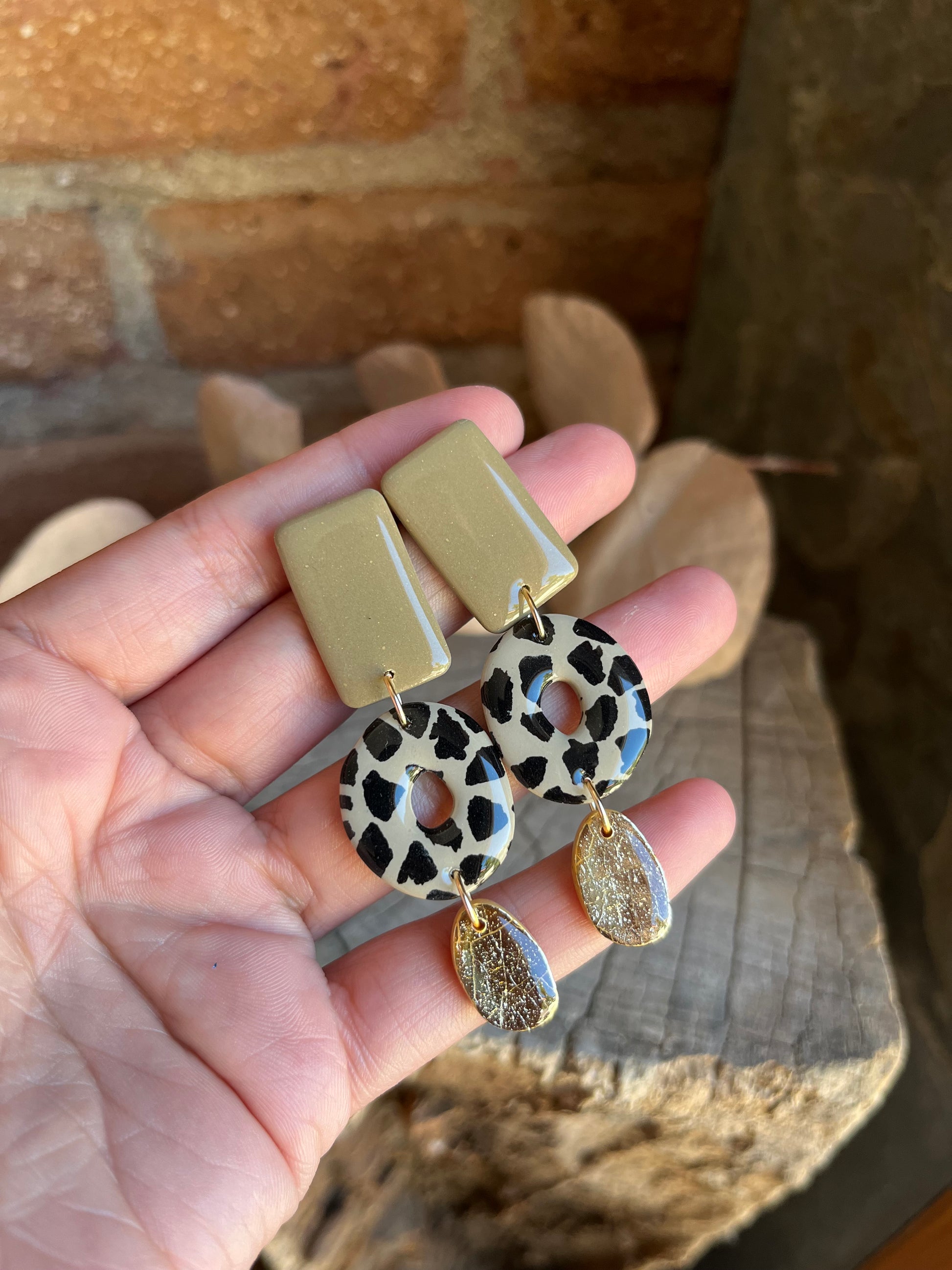 Aros de arcilla polimérica con top coat de resina uv. Miden 6,6 cms. Palito de acero quirúrgico y tope de goma.