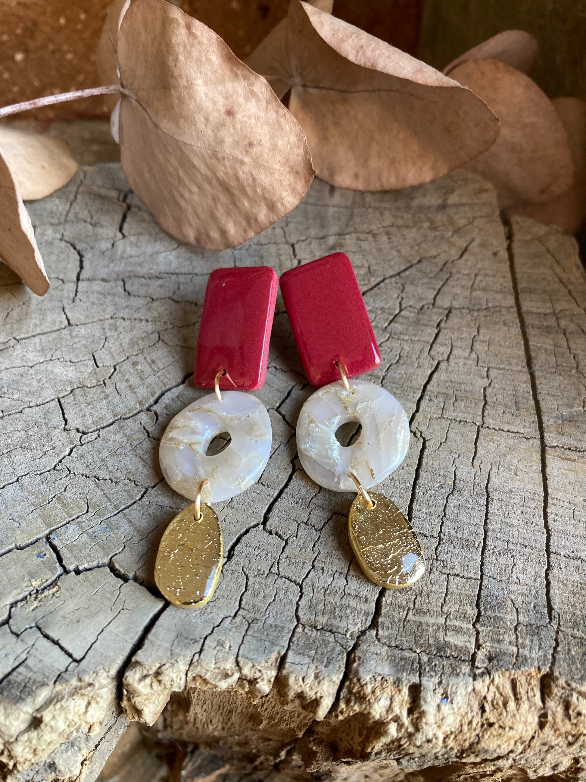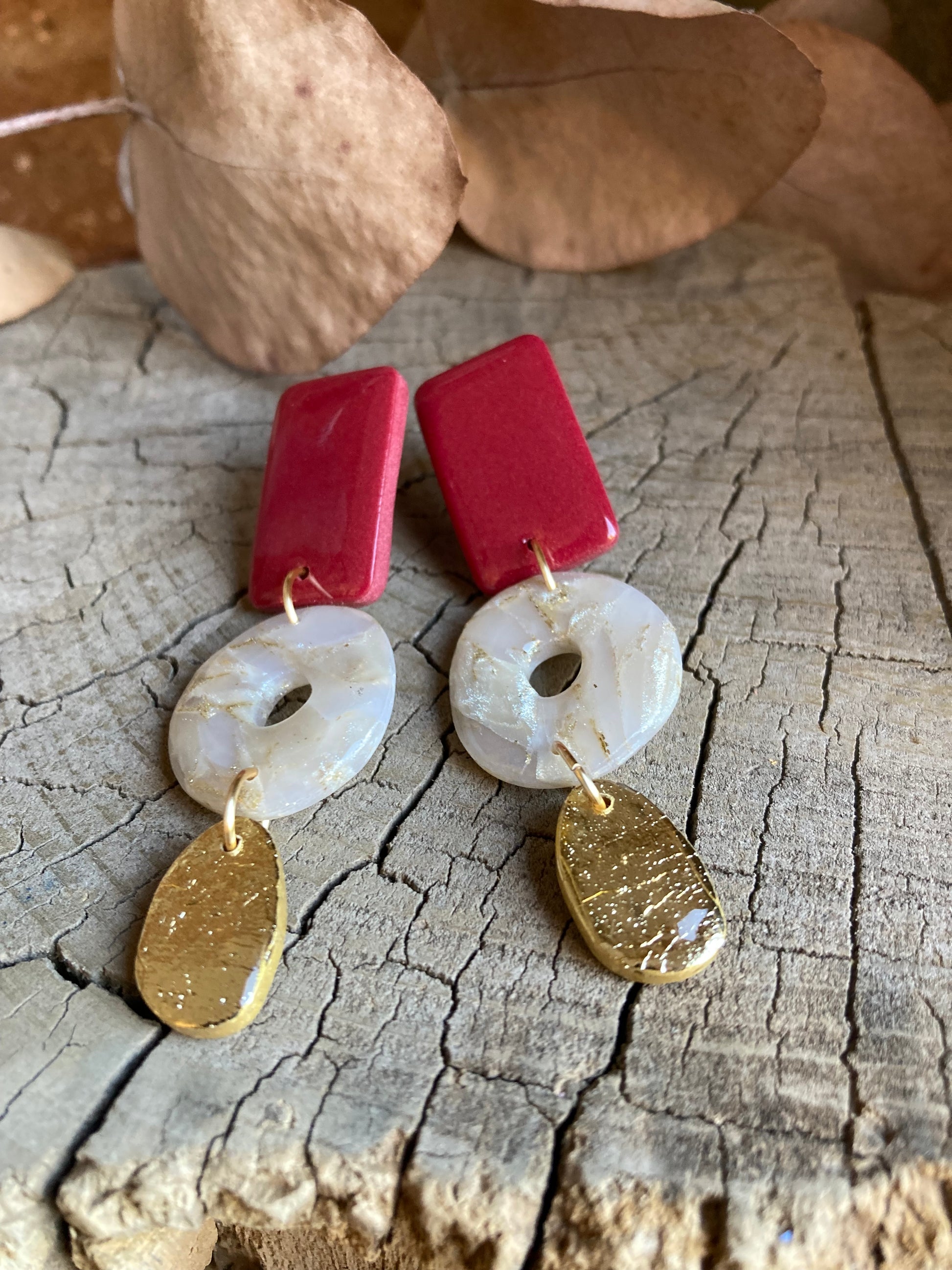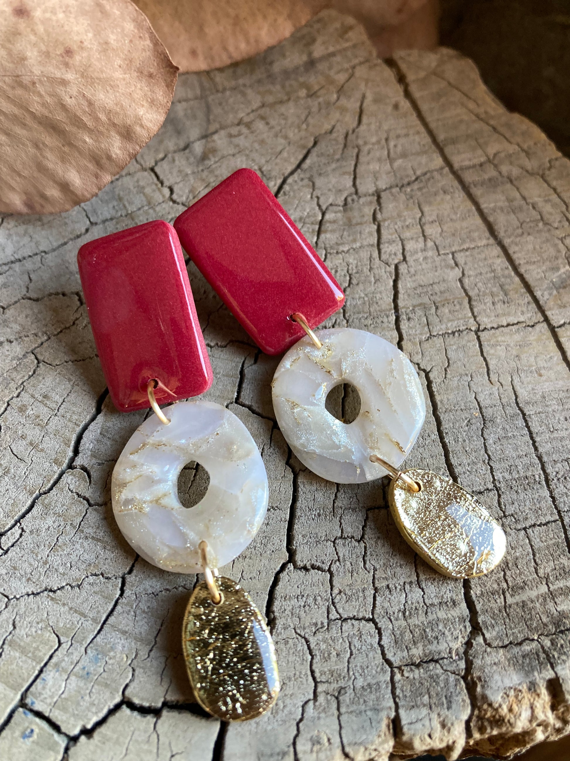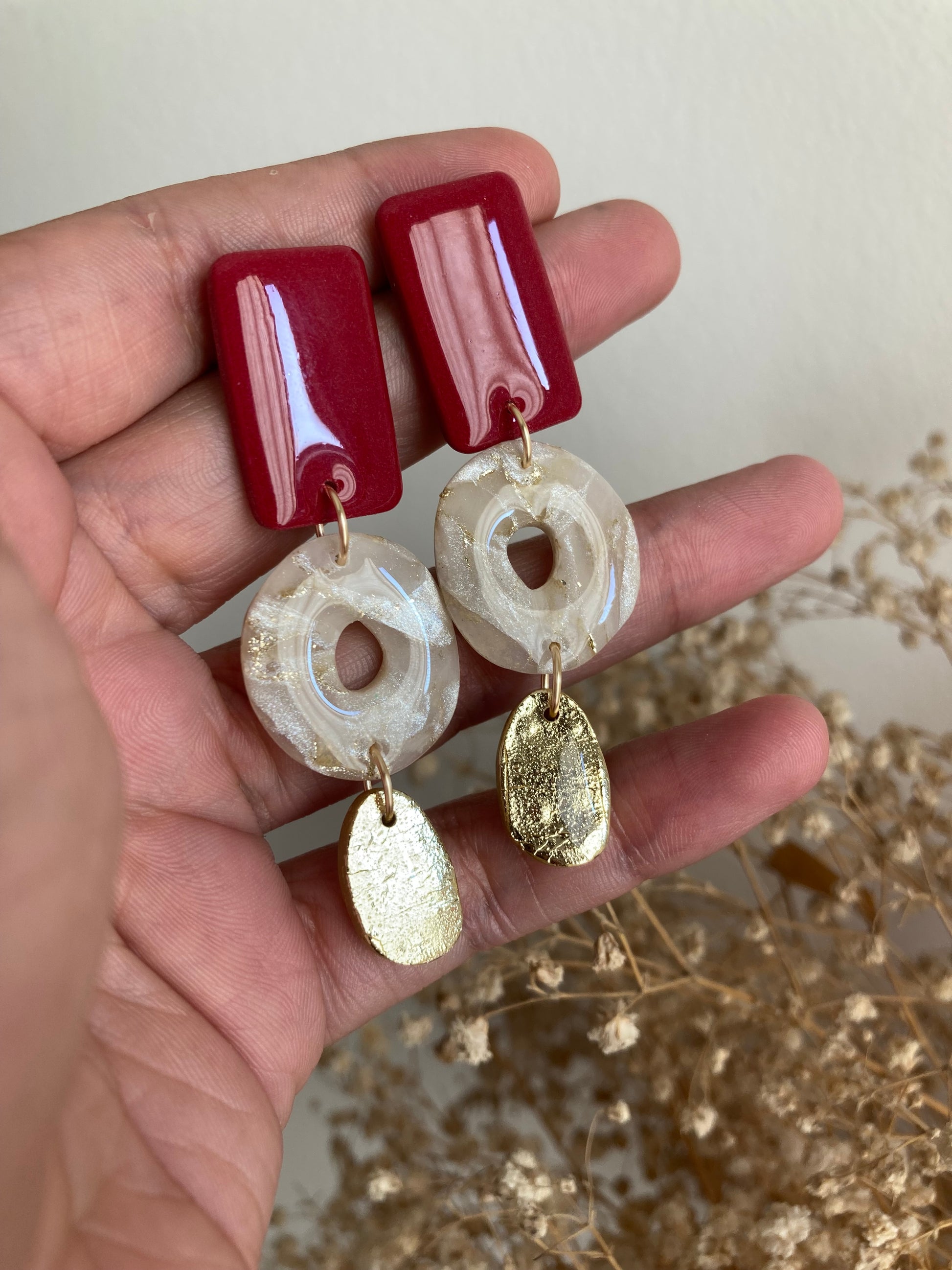Aros de arcilla polimérica con top coat de resina uv. Miden 6,6 cms. Palito de acero quirúrgico y tope de goma.