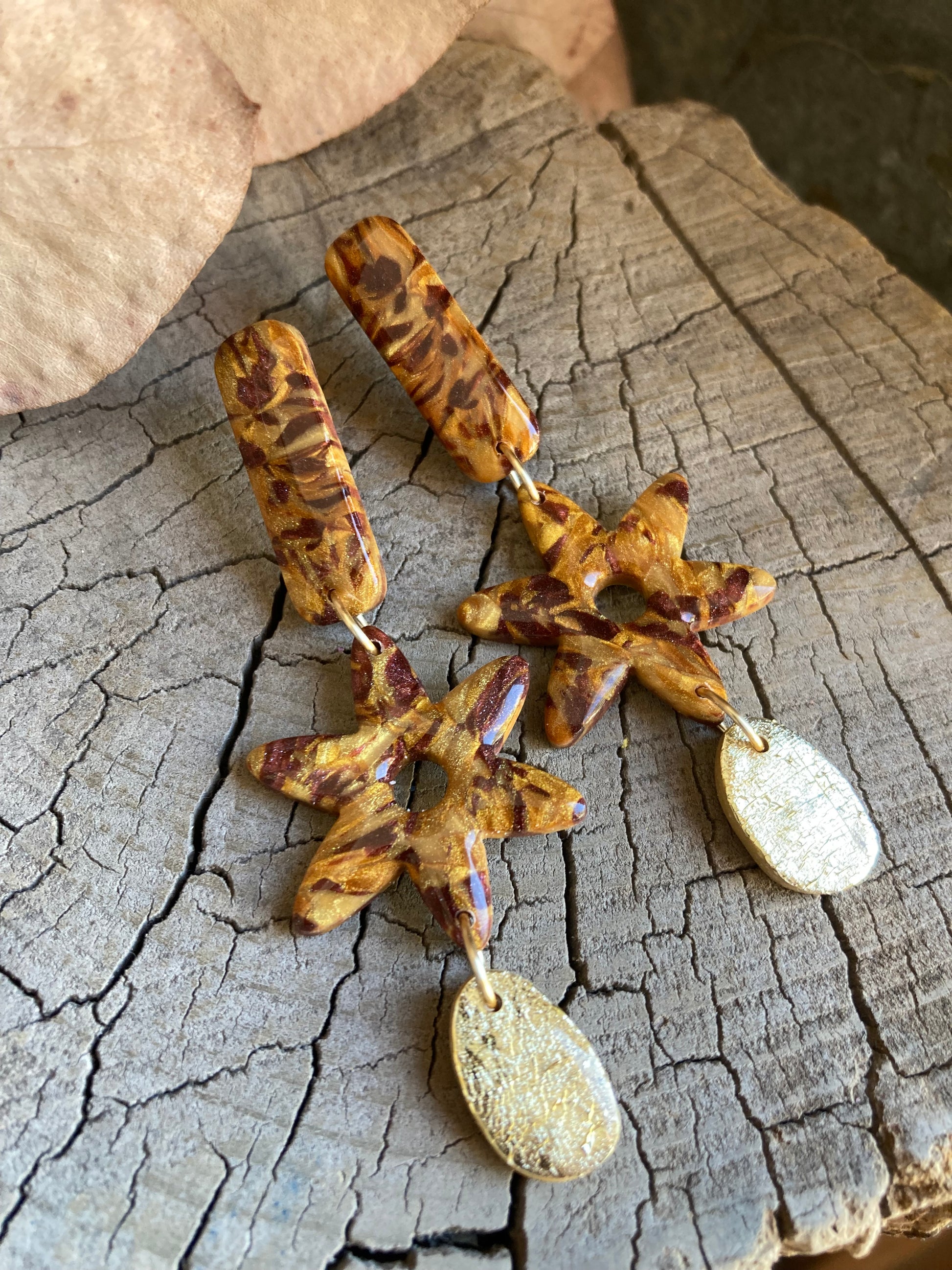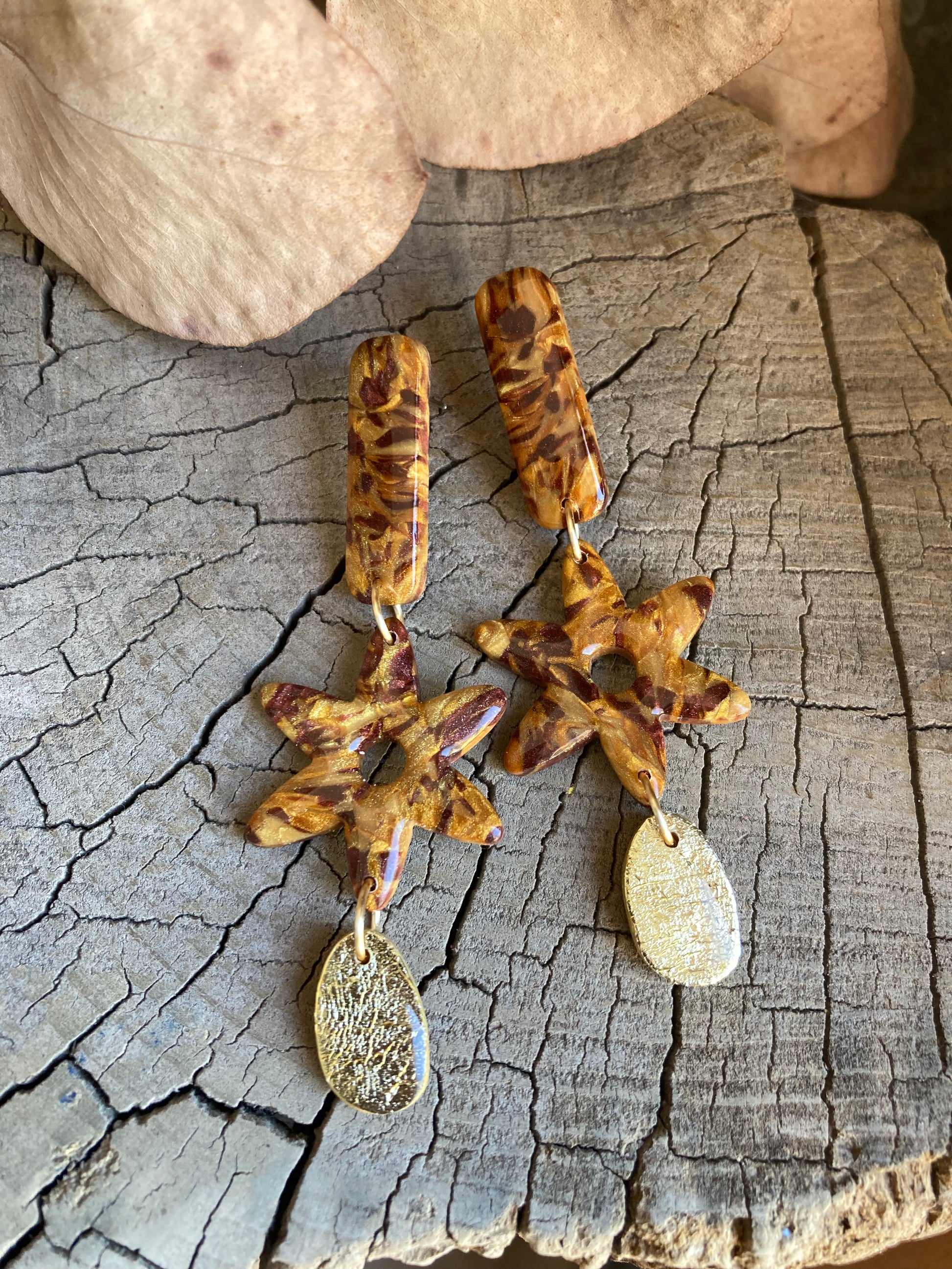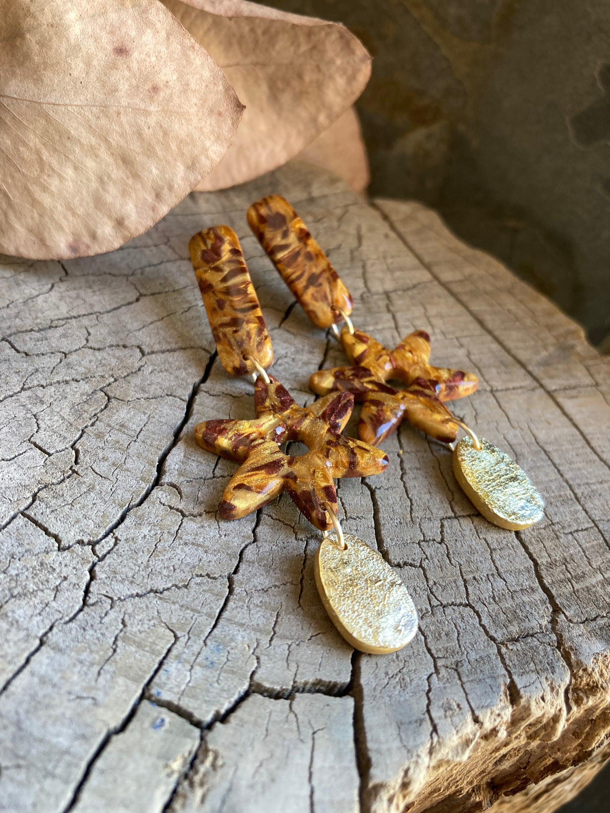 Aros de arcilla polimérica con top coat de resina uv. Miden 7,7 cms. Palito de acero quirúrgico y tope de goma.