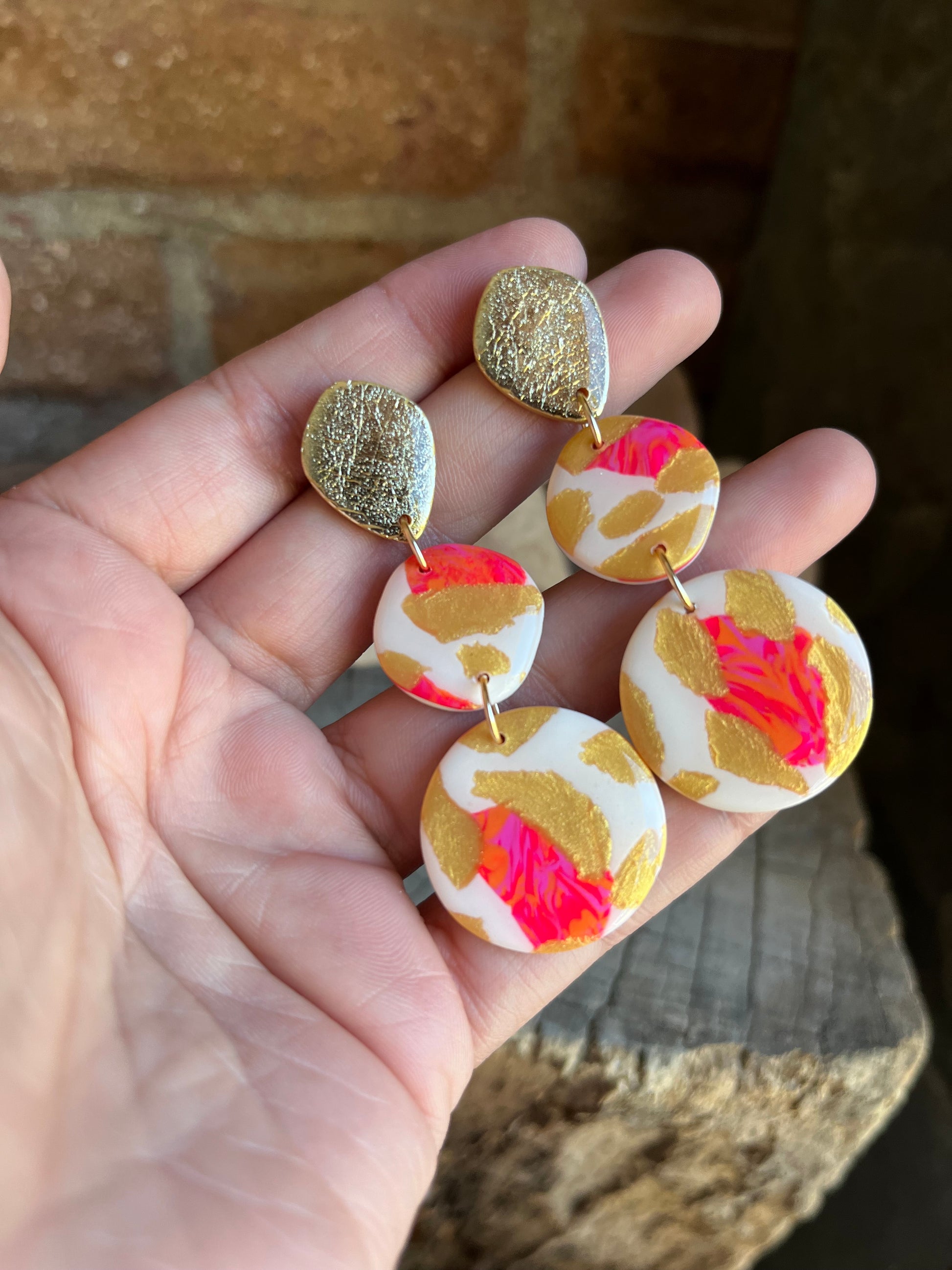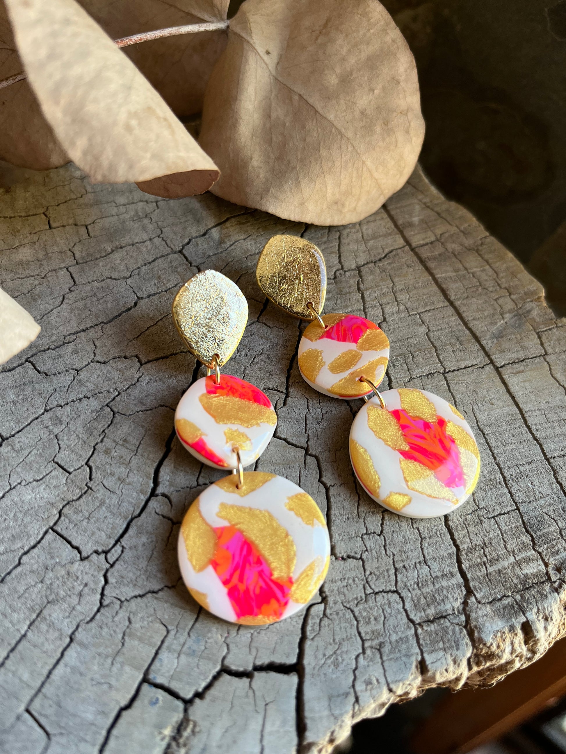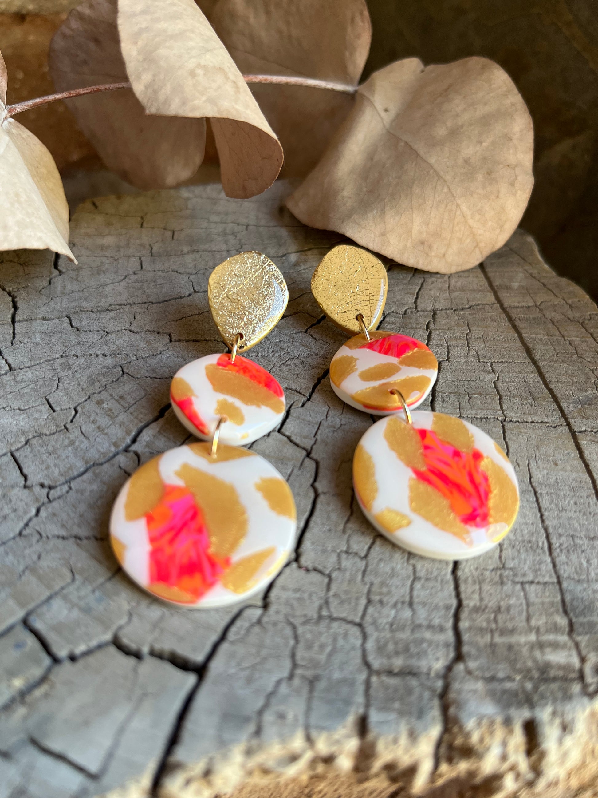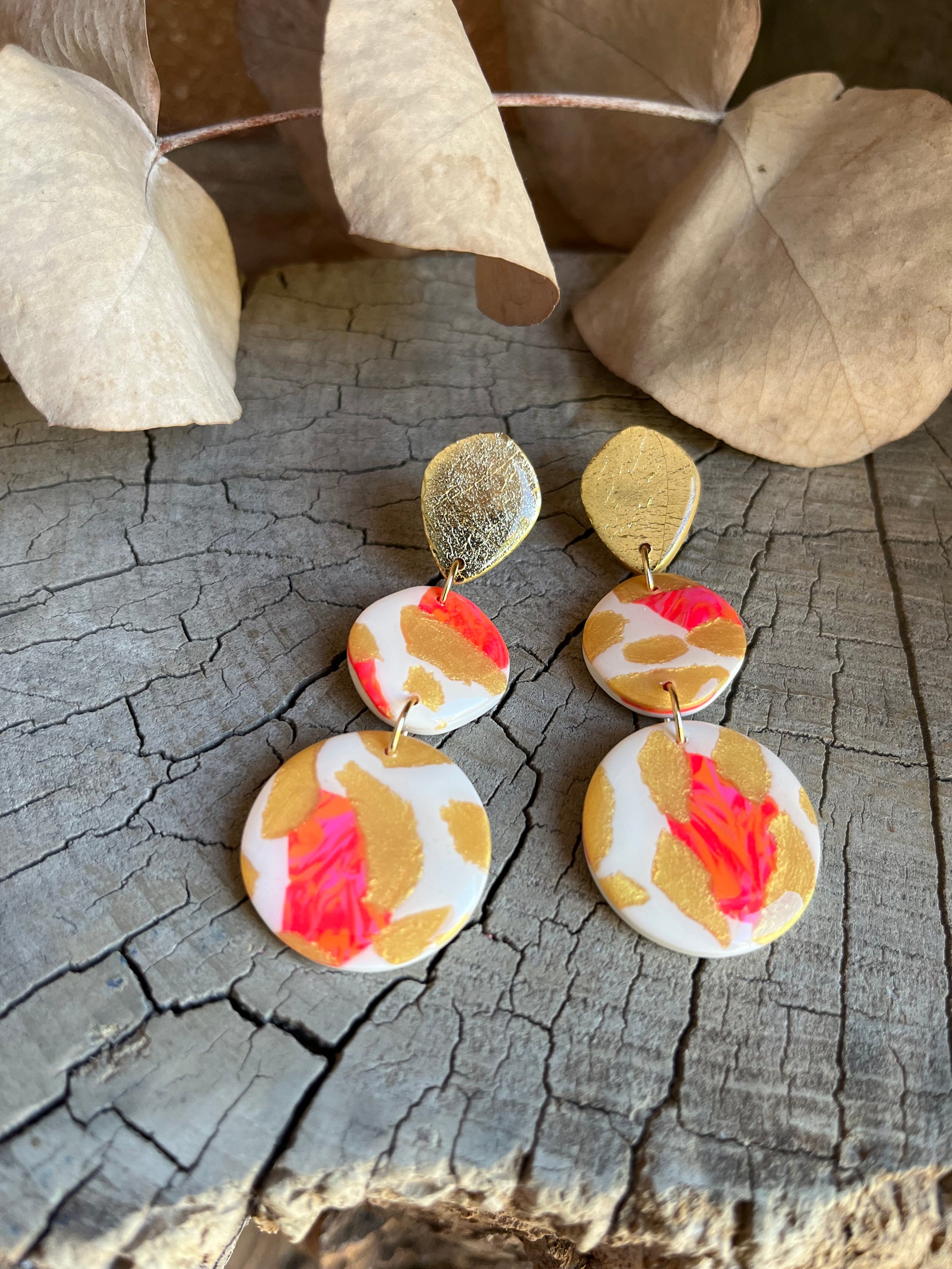 Aros de arcilla polimérica con top coat de resina uv. Miden 6,7 cms. Palito de acero quirúrgico y tope de goma.