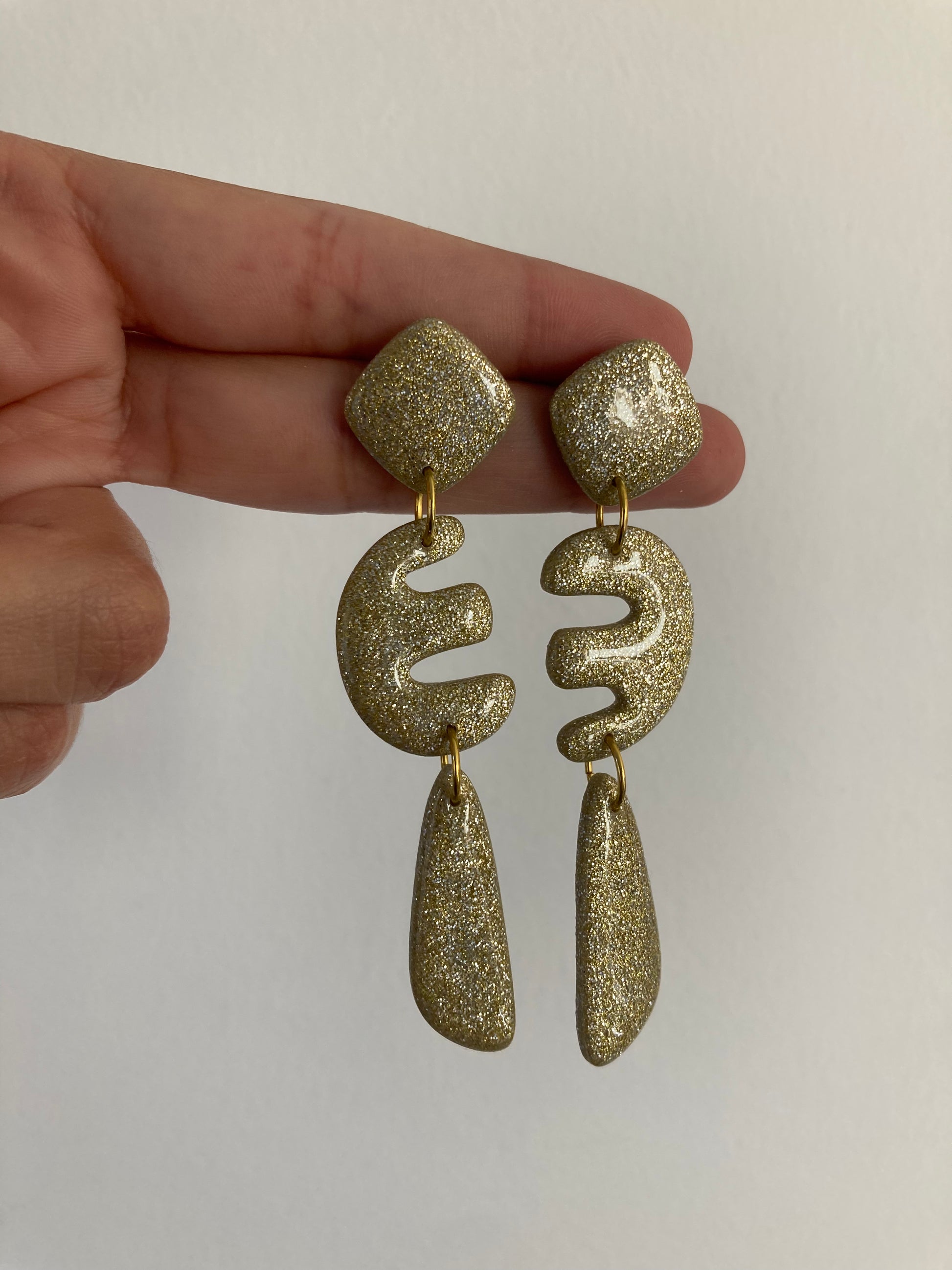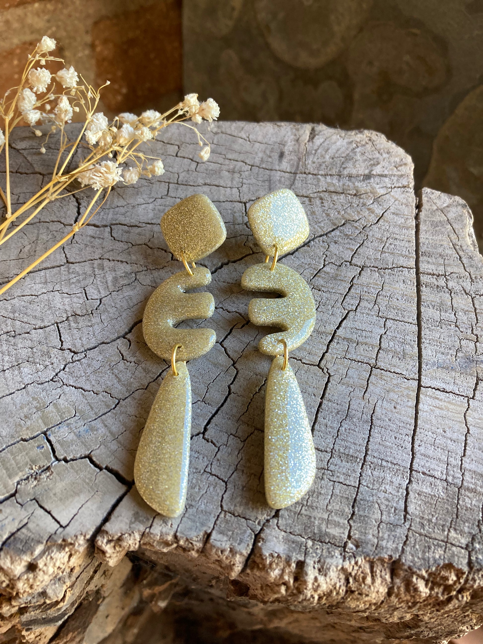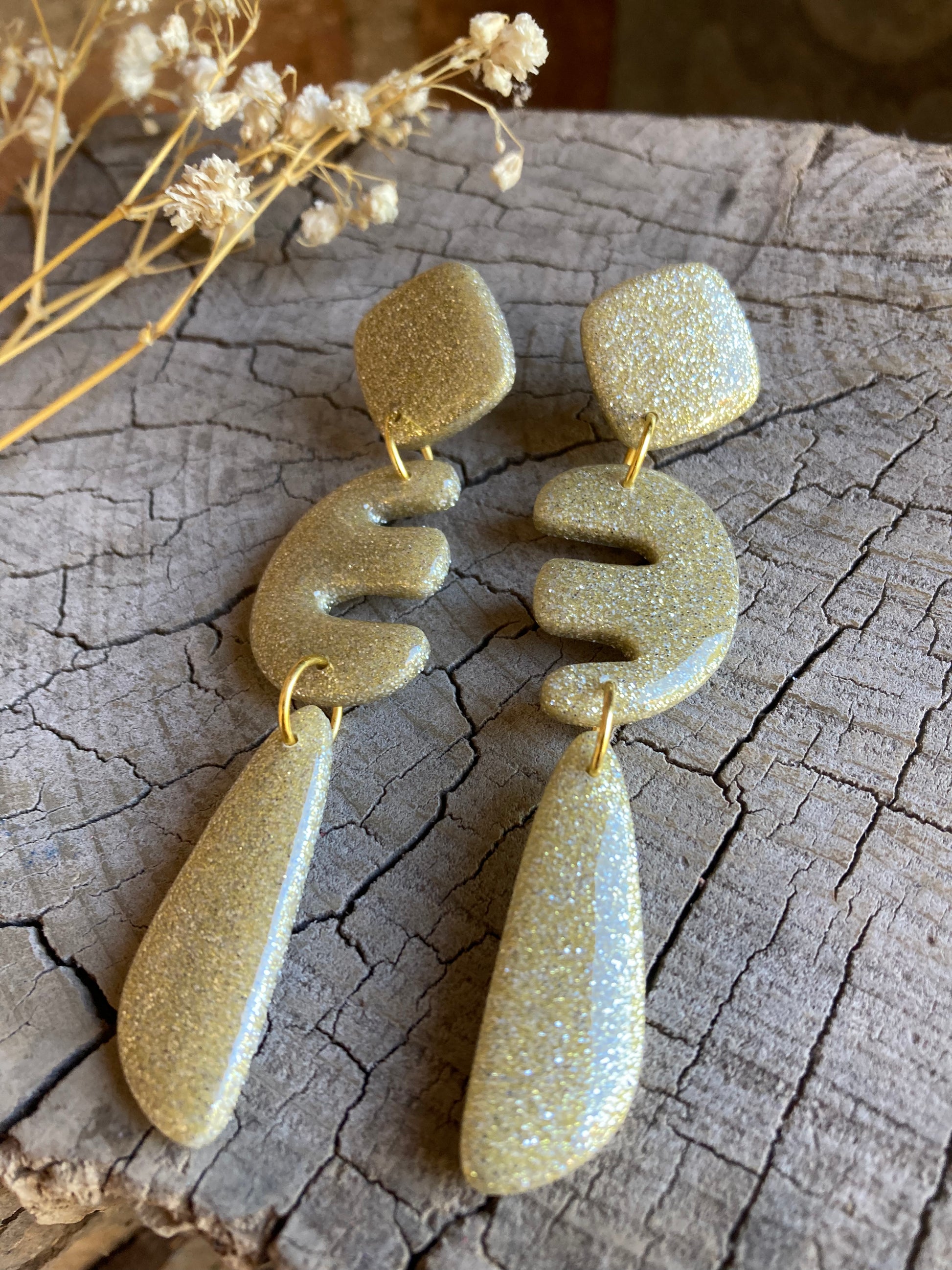 Aros de arcilla polimérica con top coat de resina uv. Miden 8,5 cms. Palito de acero quirúrgico y tope de goma.