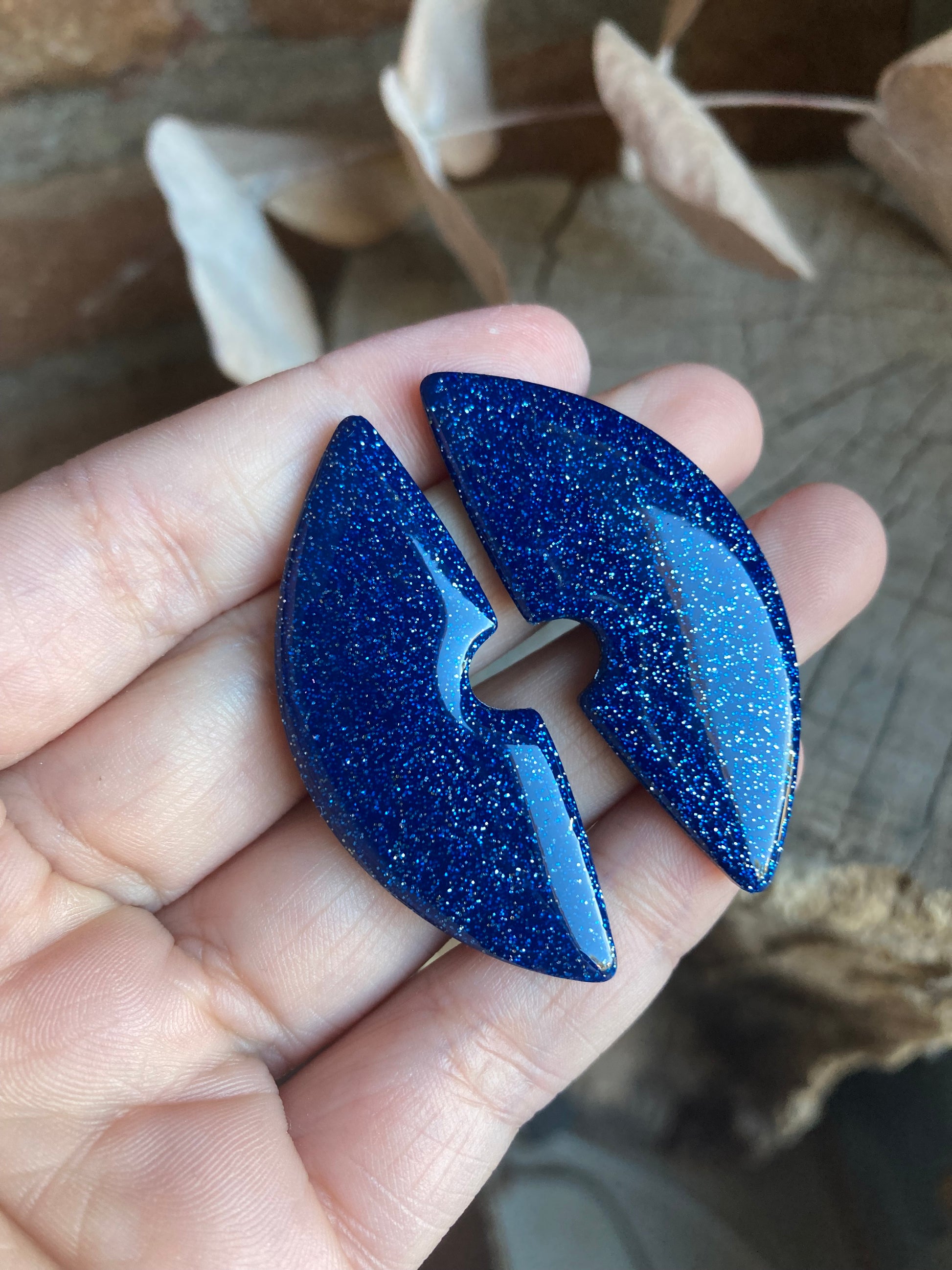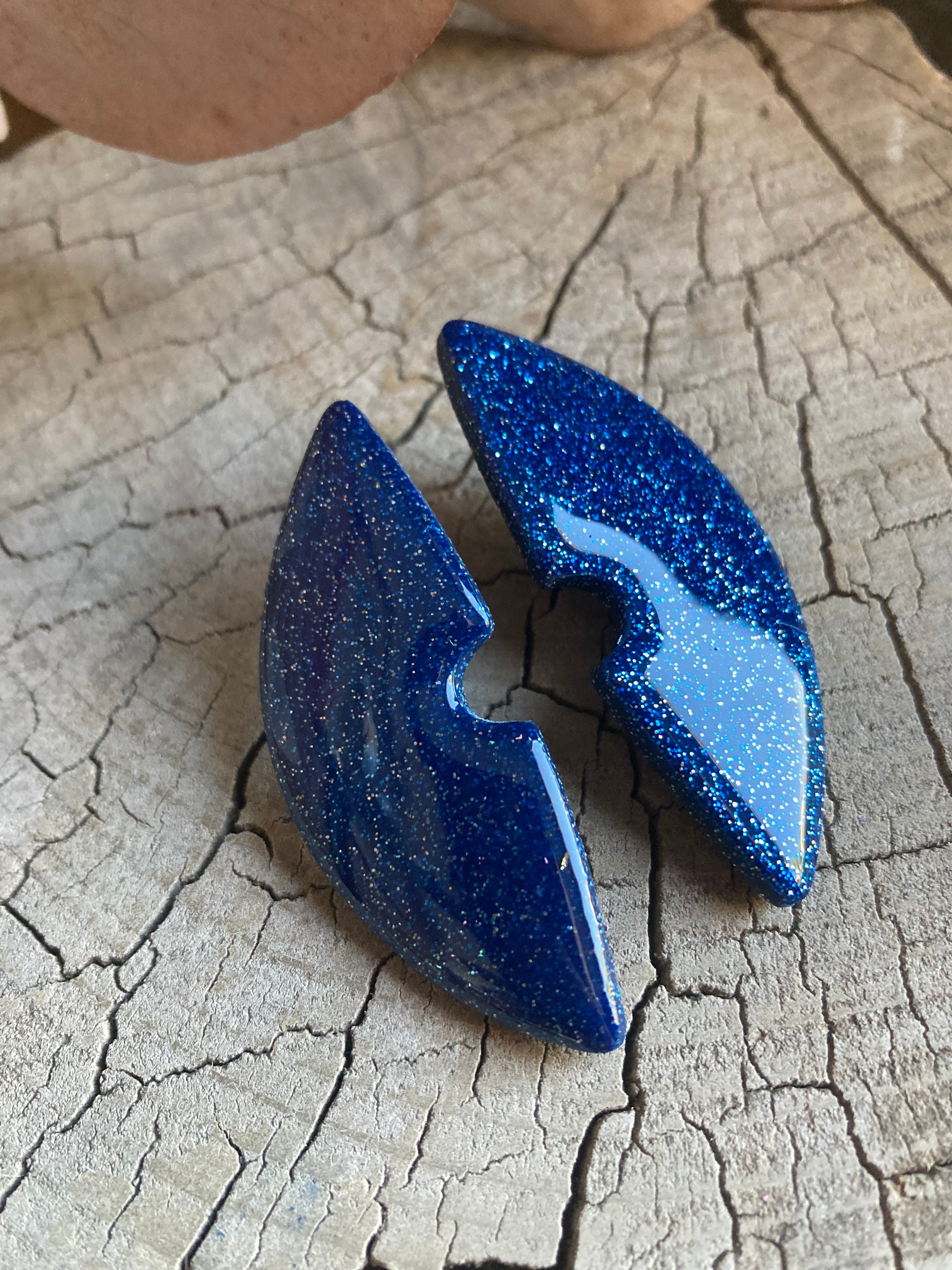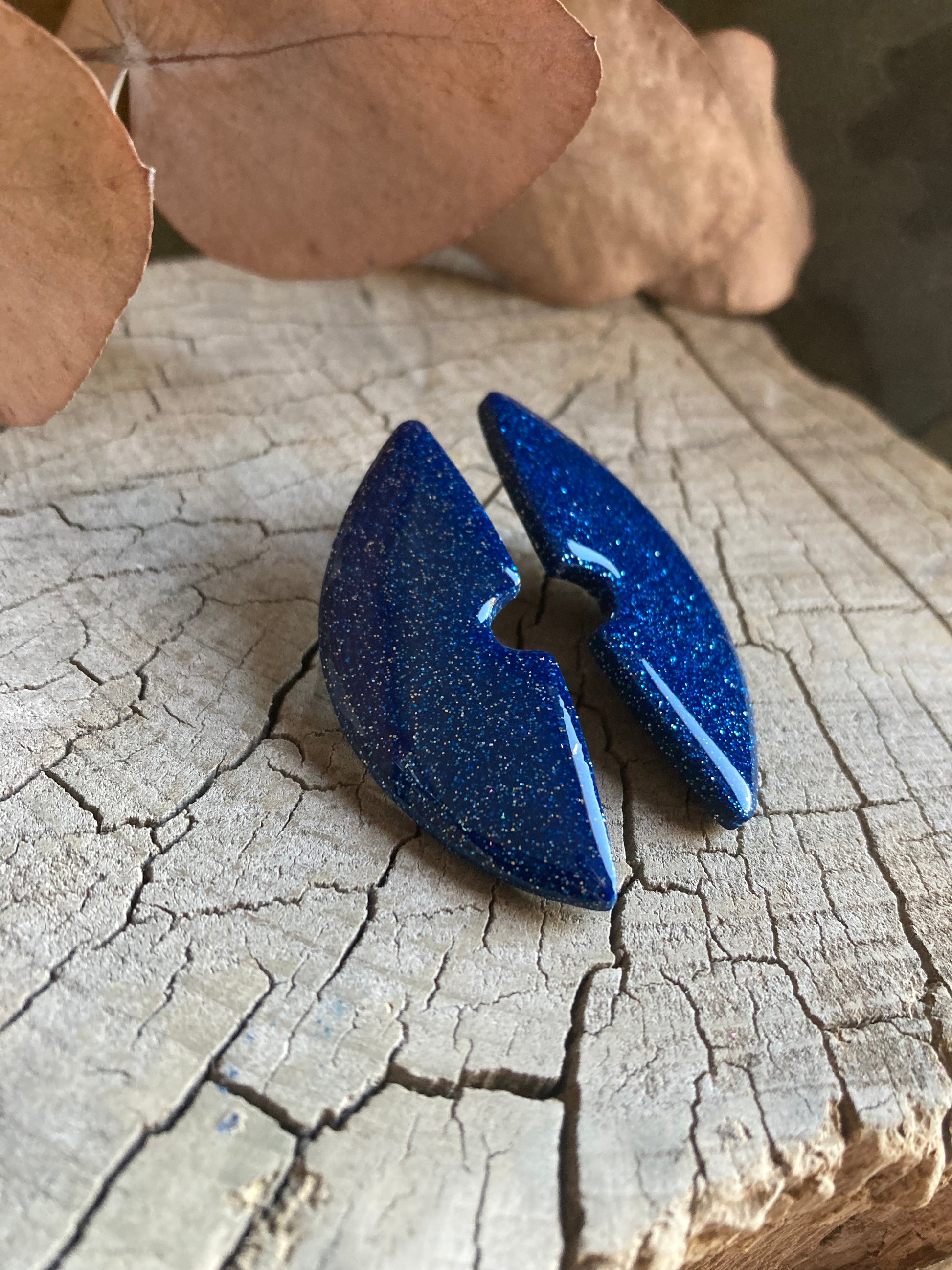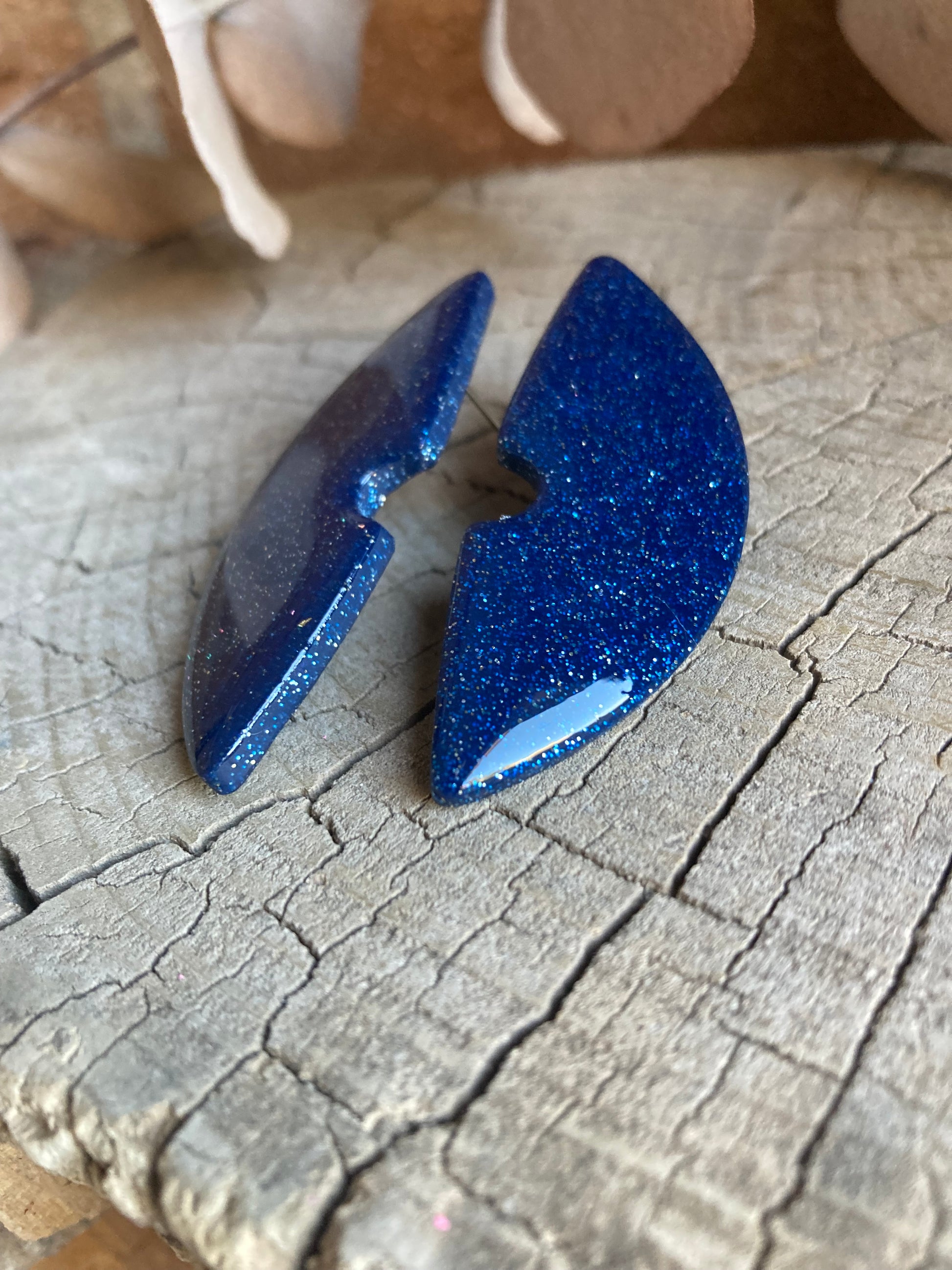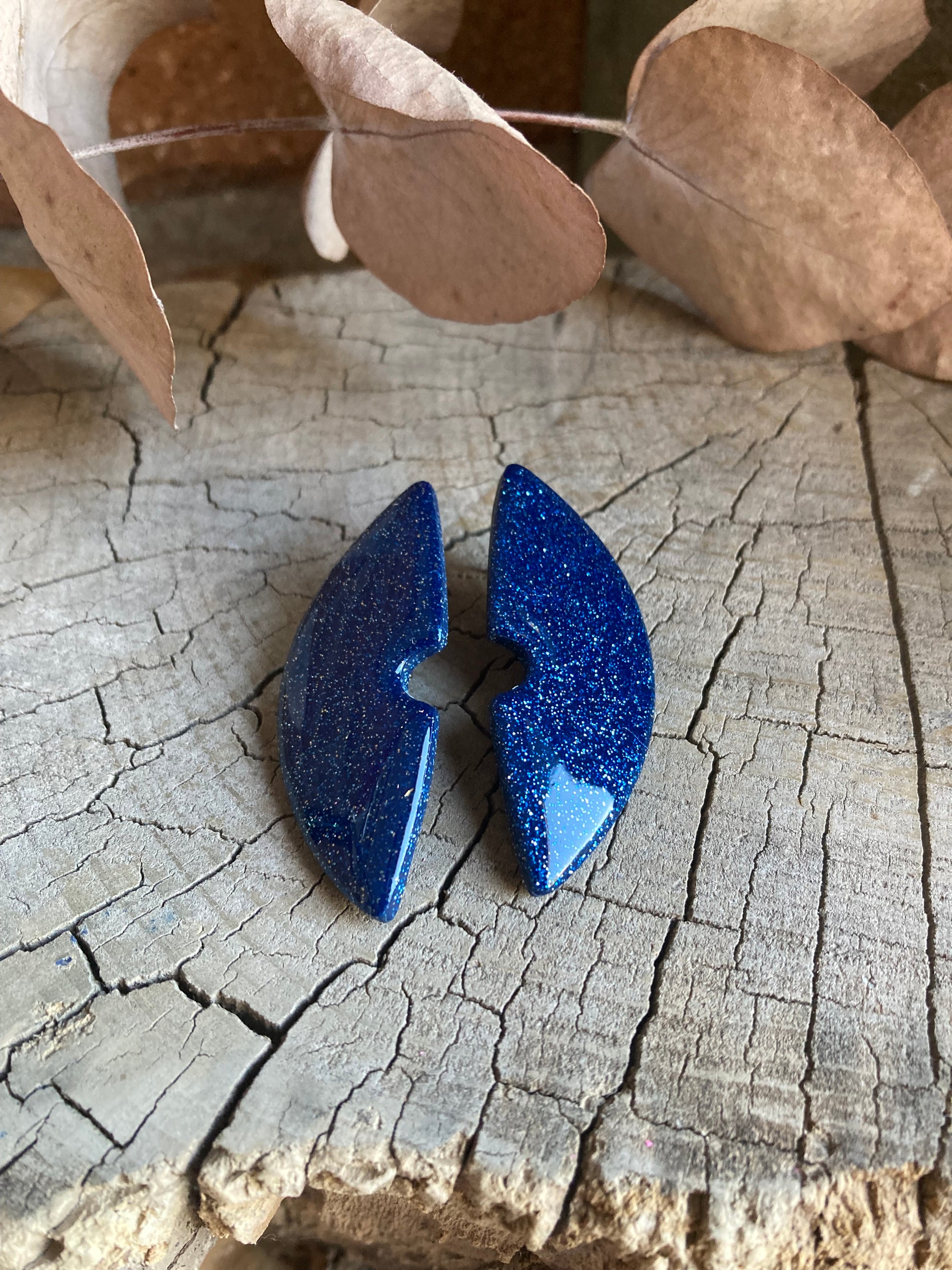 Aros de arcilla polimérica con top coat de resina uv. Miden 5 cms. Palito de acero quirúrgico y tope de goma.