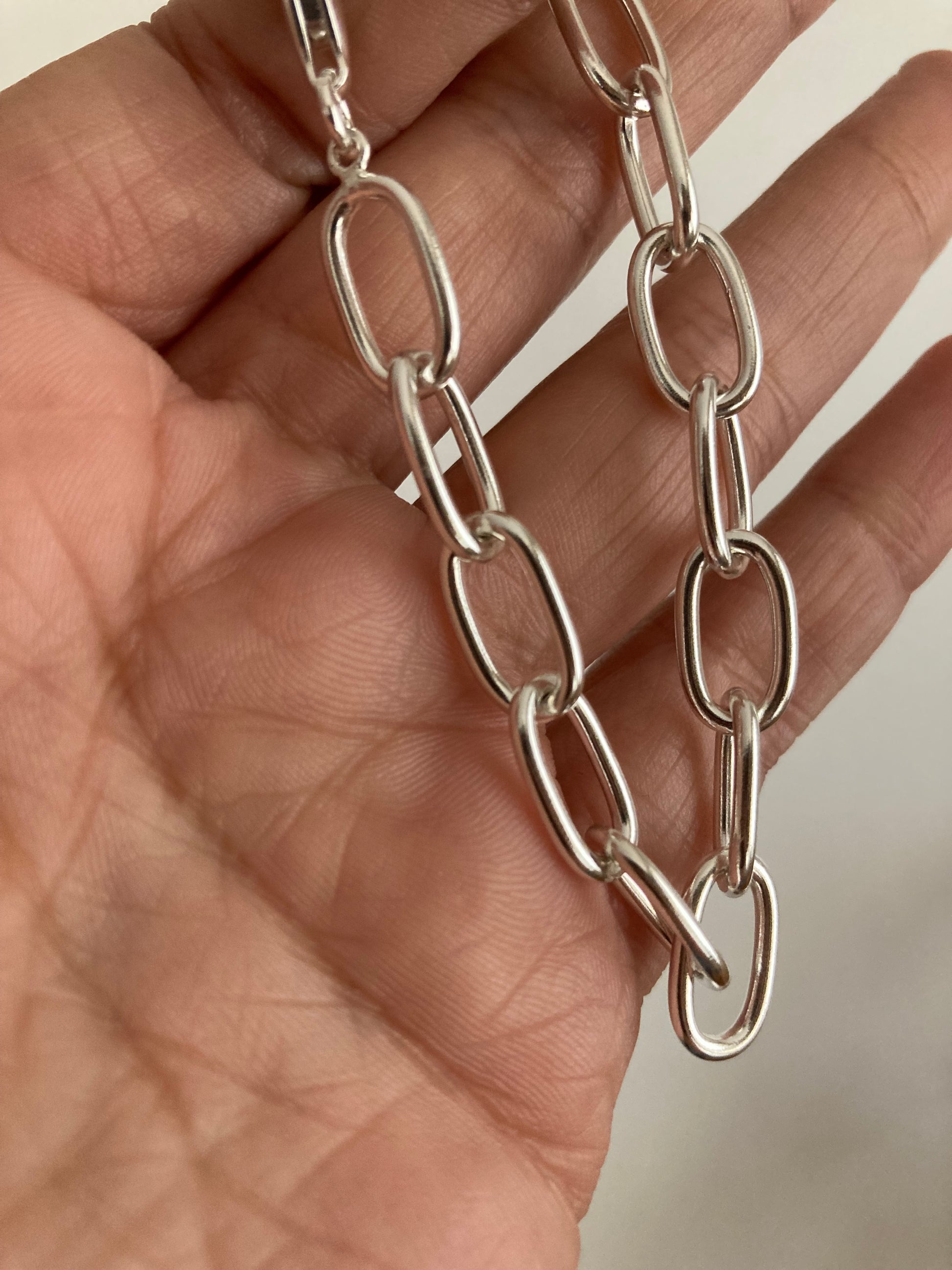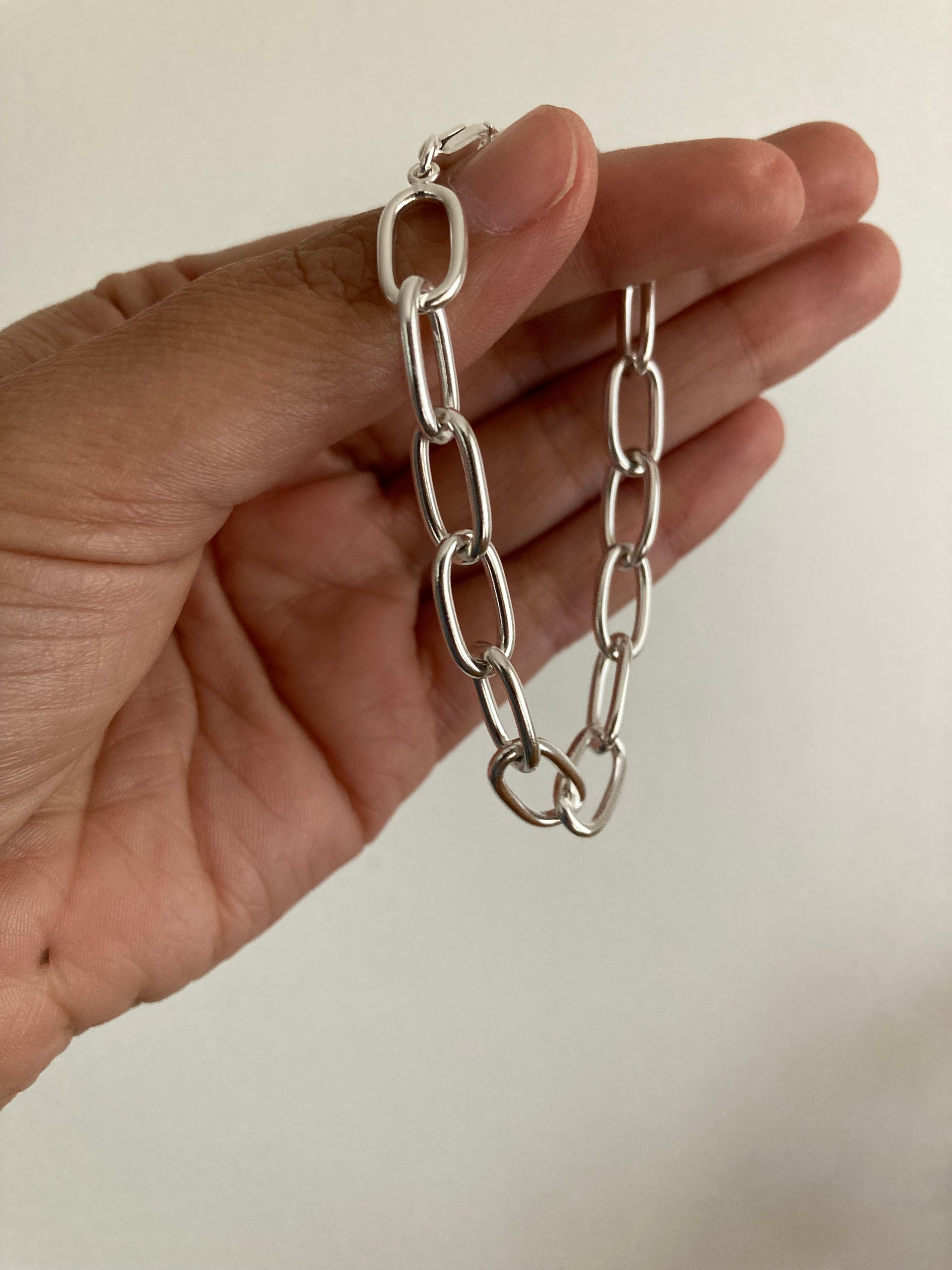 Pulsera de plata 980 soldada eslabón por eslabón. Mide 18 cms pero puedes abrocharla en cualquier eslabón para que te quede ajustada.