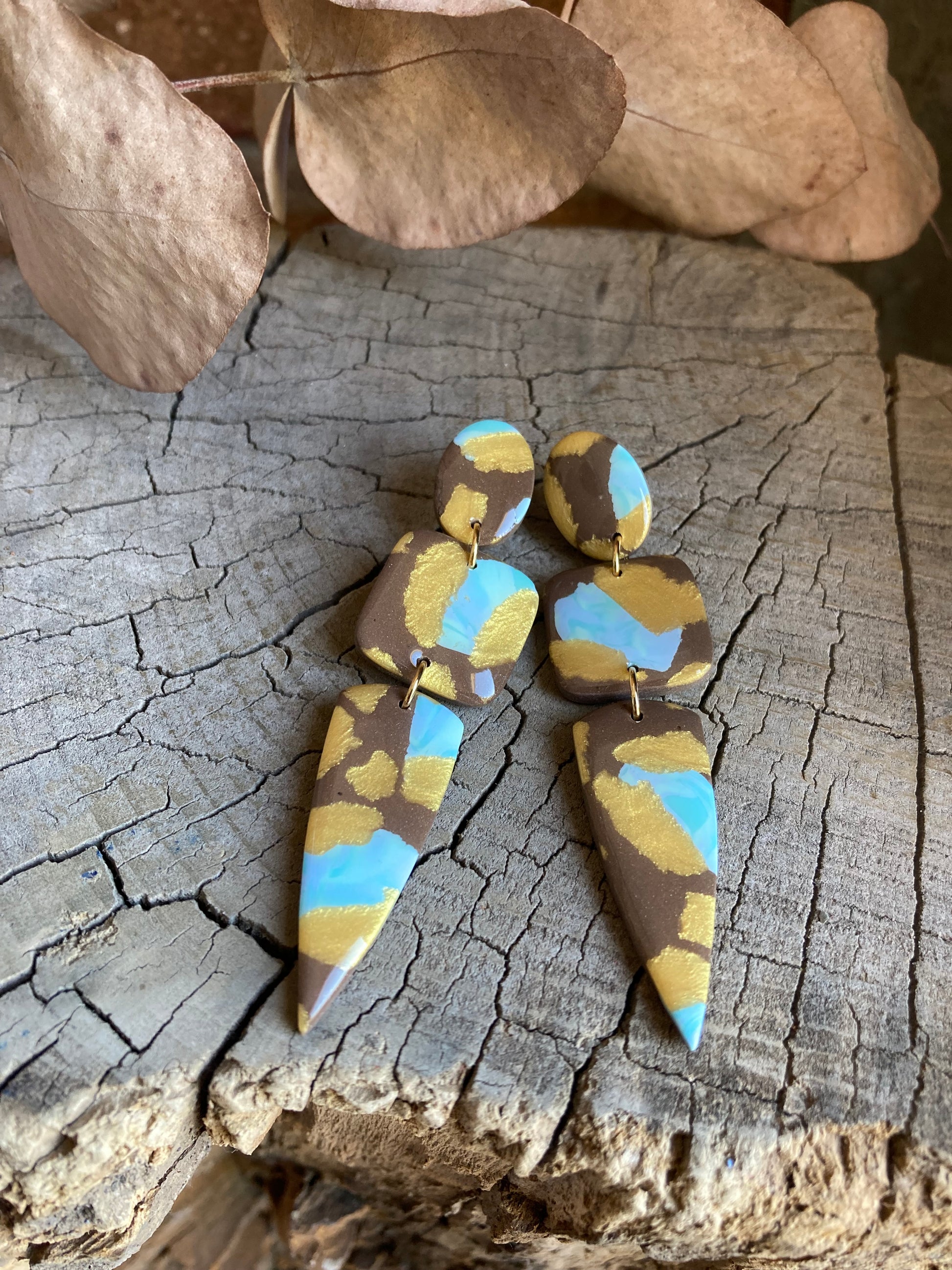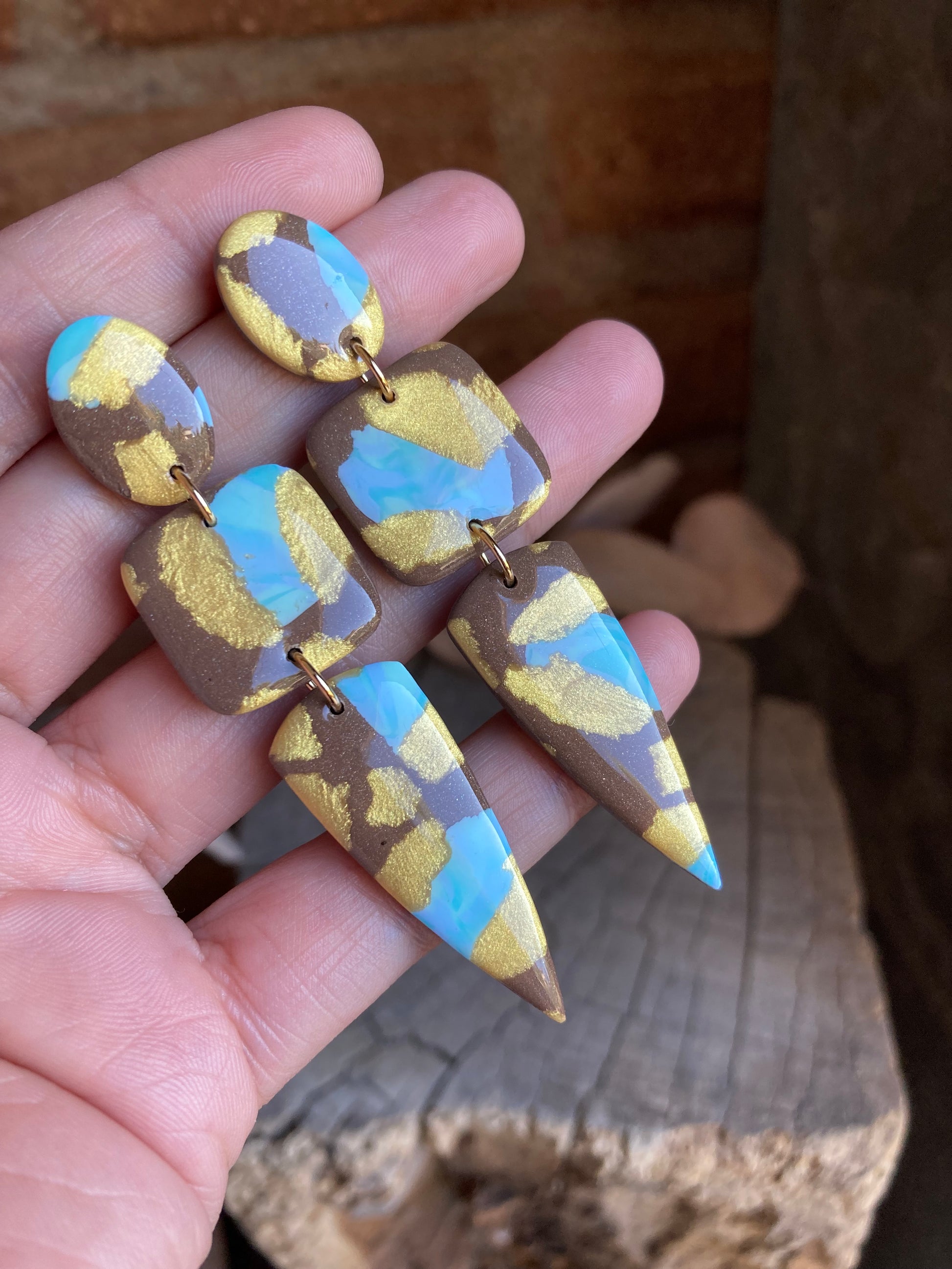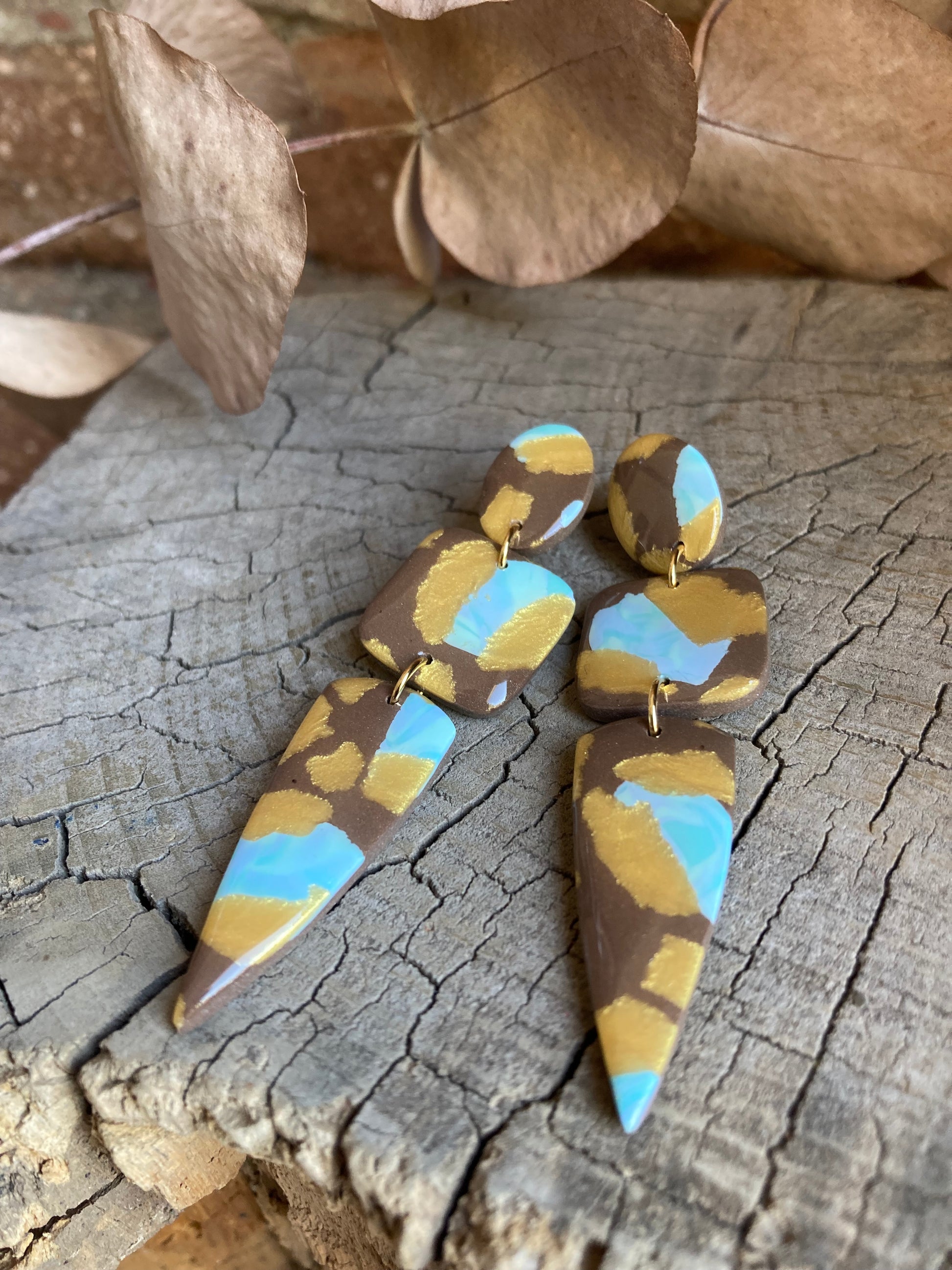 Aros de arcilla polimérica con top coat de resina uv. Miden 7,4 cms. Palito de acero quirúrgico y tope de goma.