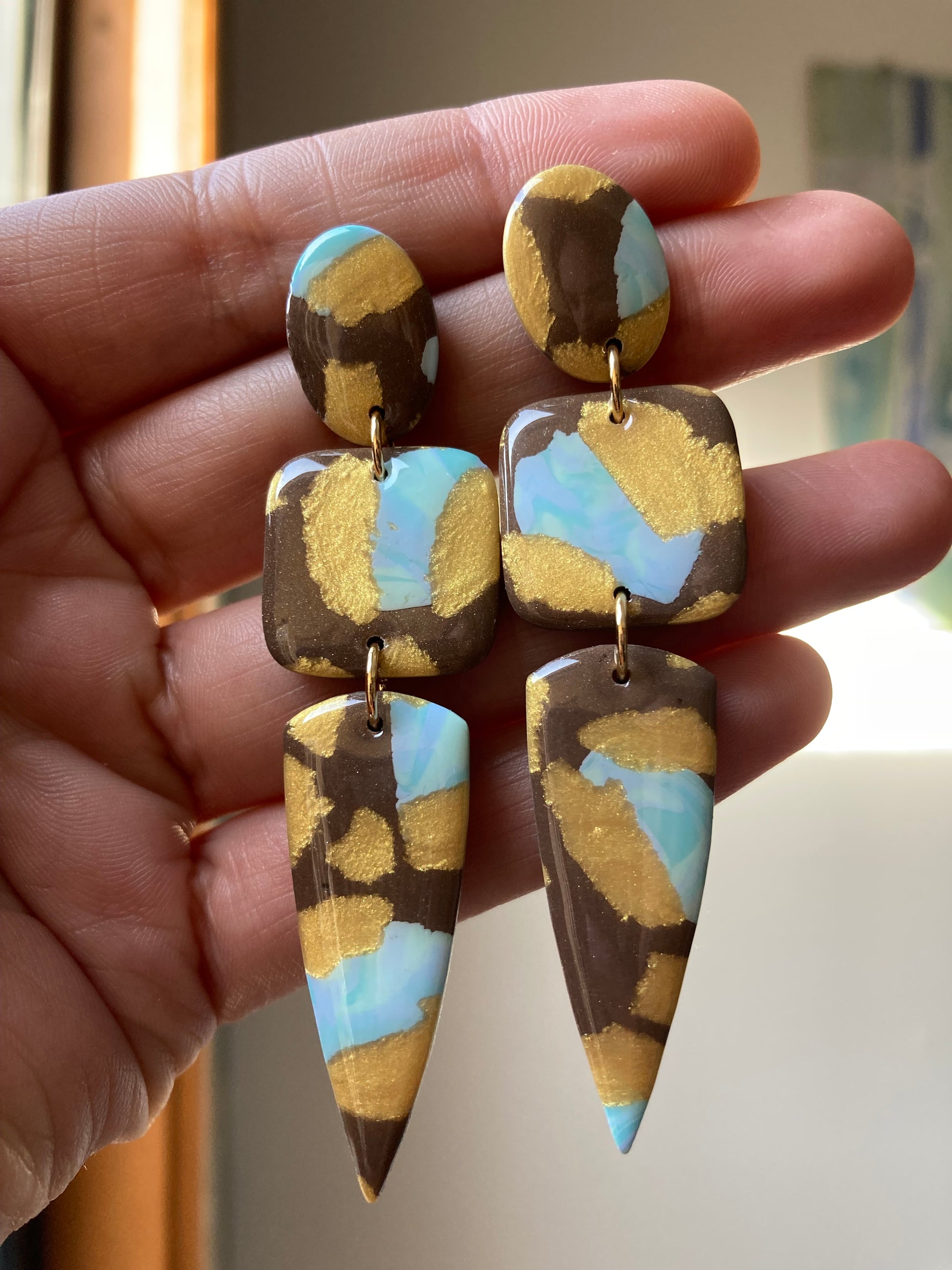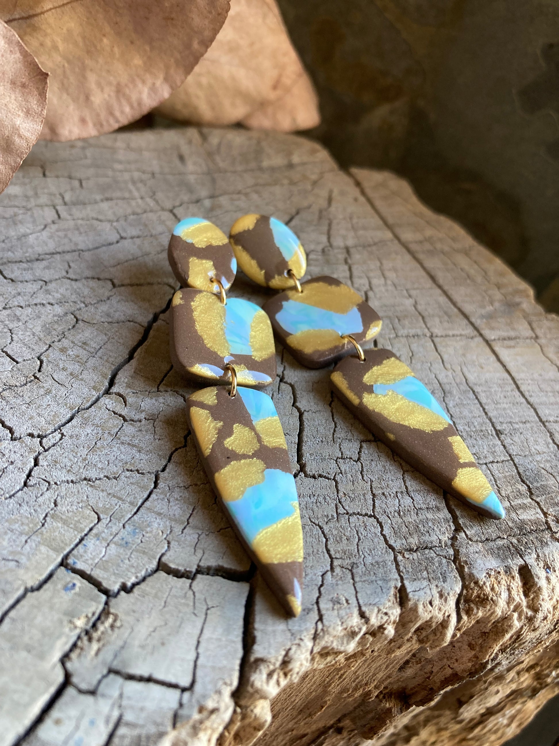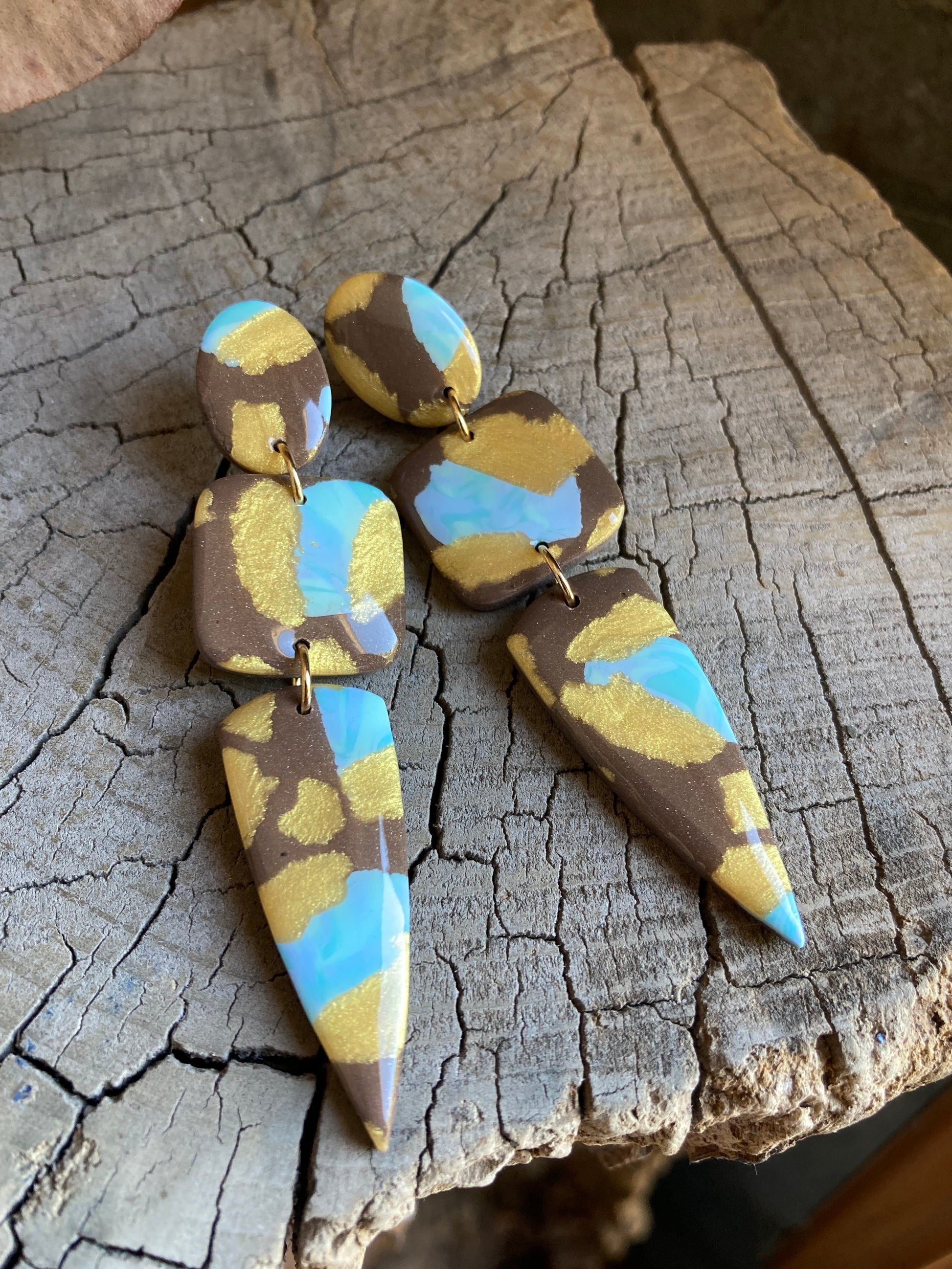 Aros de arcilla polimérica con top coat de resina uv. Miden 7,4 cms. Palito de acero quirúrgico y tope de goma.