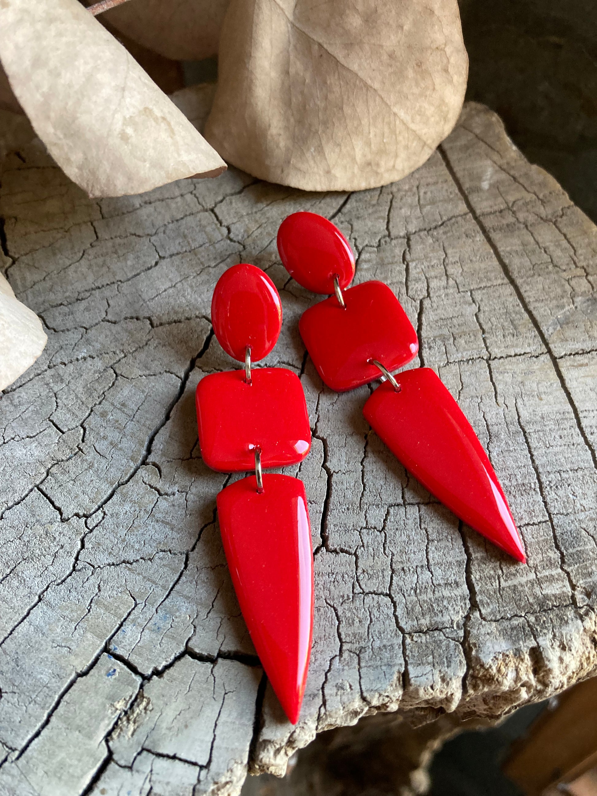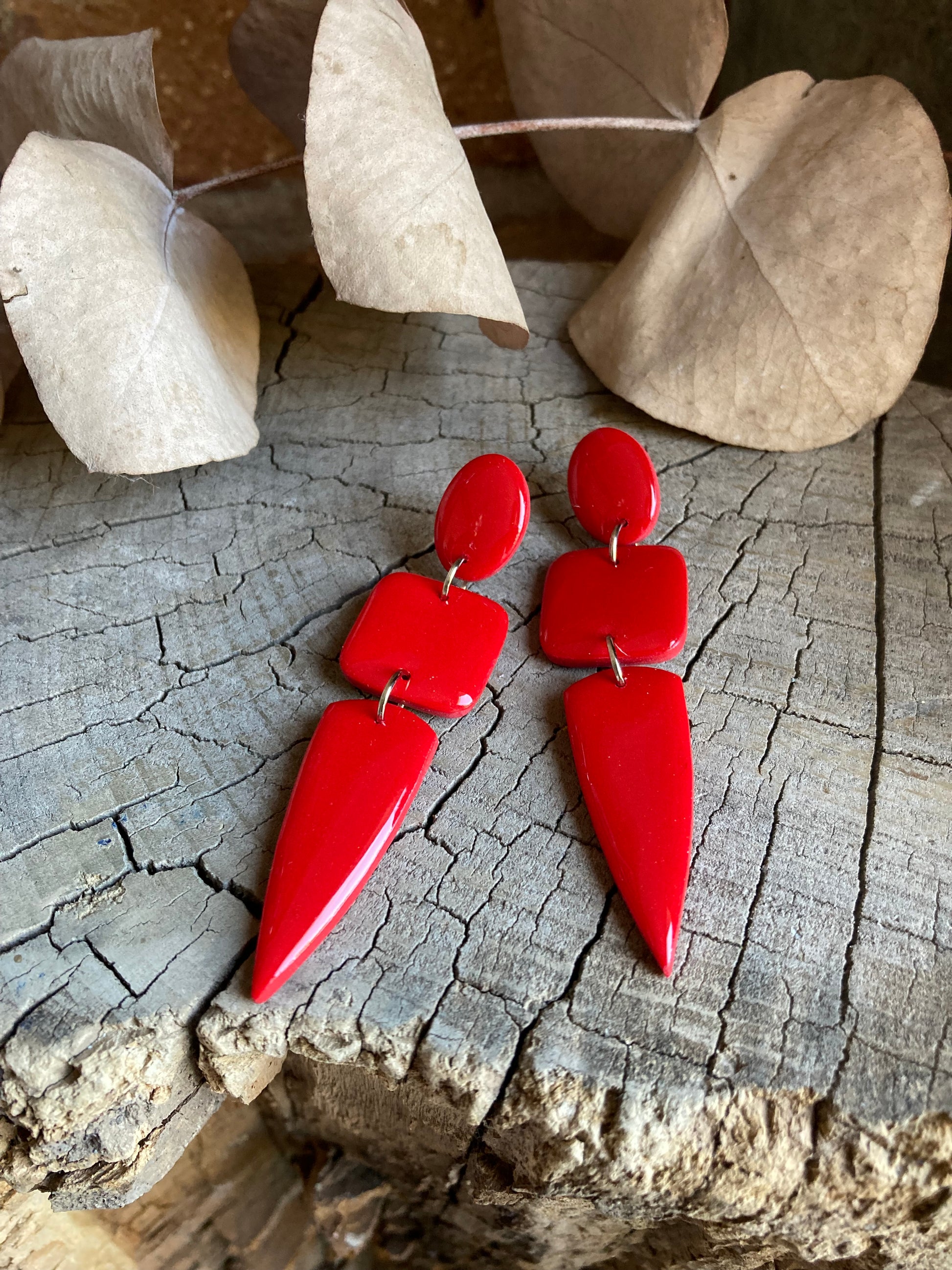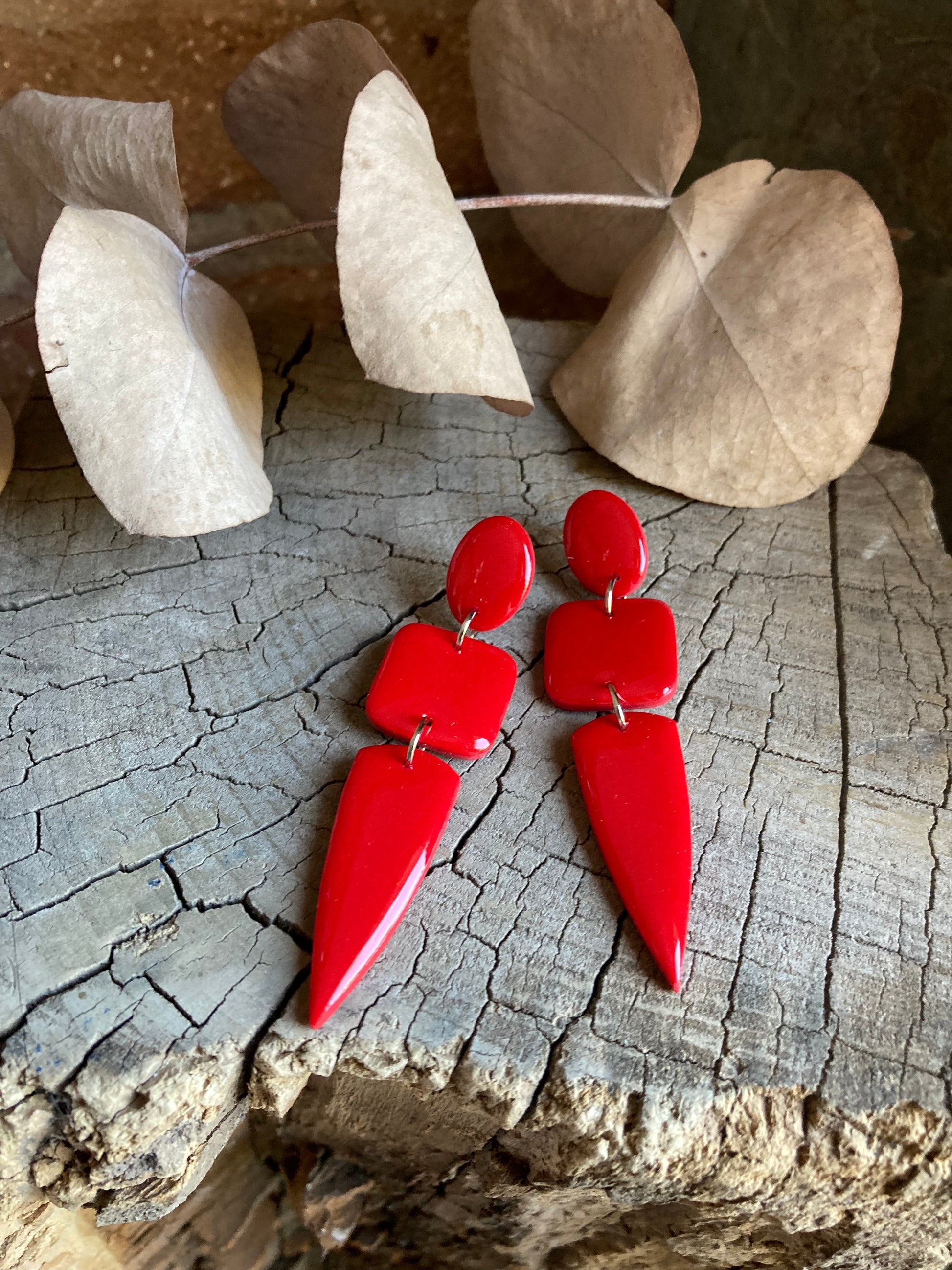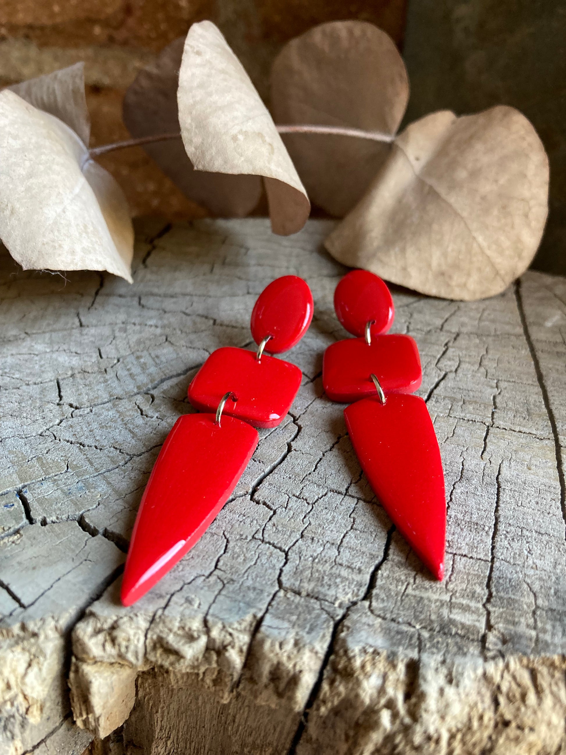 Aros de arcilla polimérica con top coat de resina uv. Miden 7,4 cms. Palito de acero quirúrgico y tope de goma.