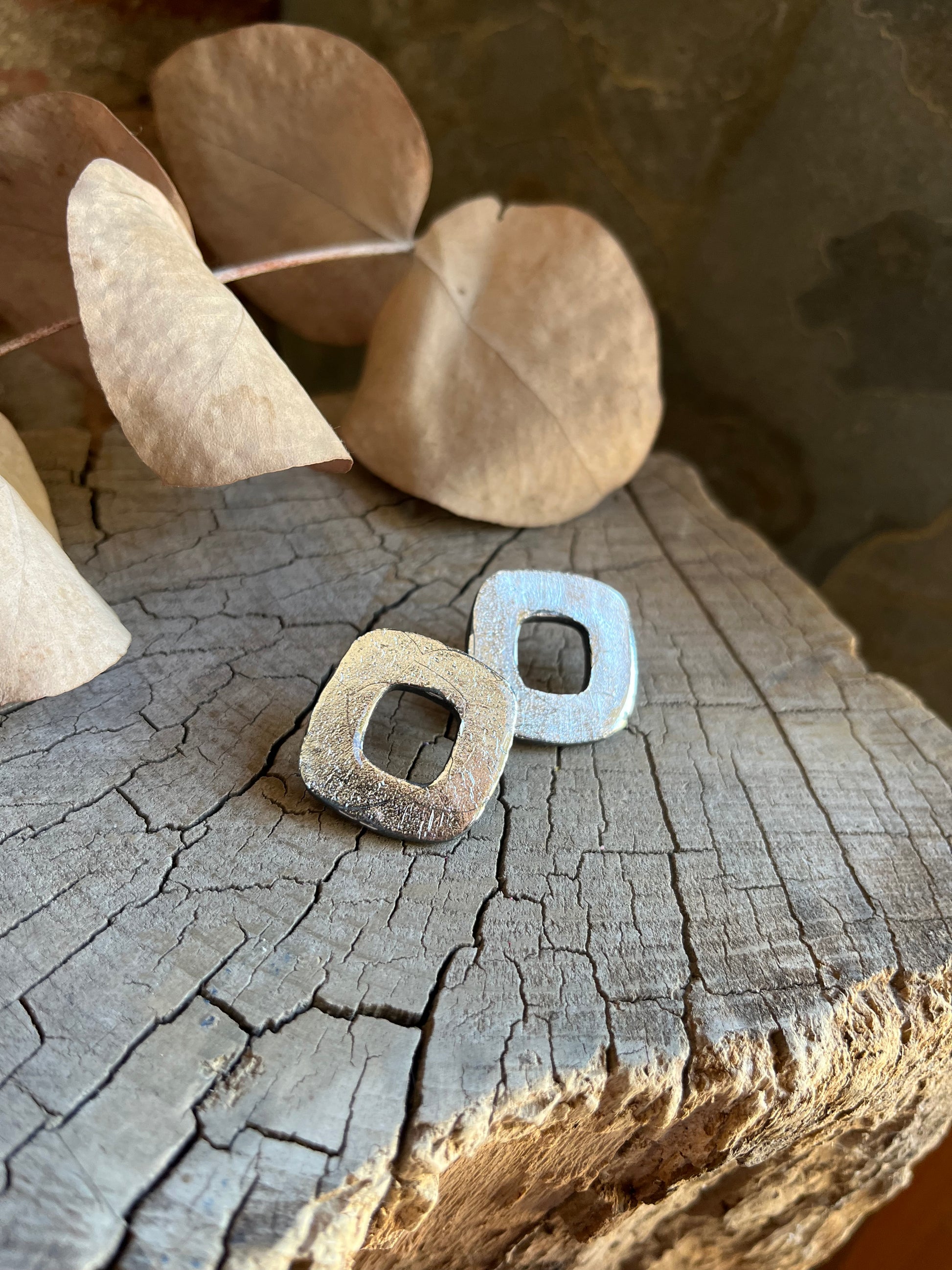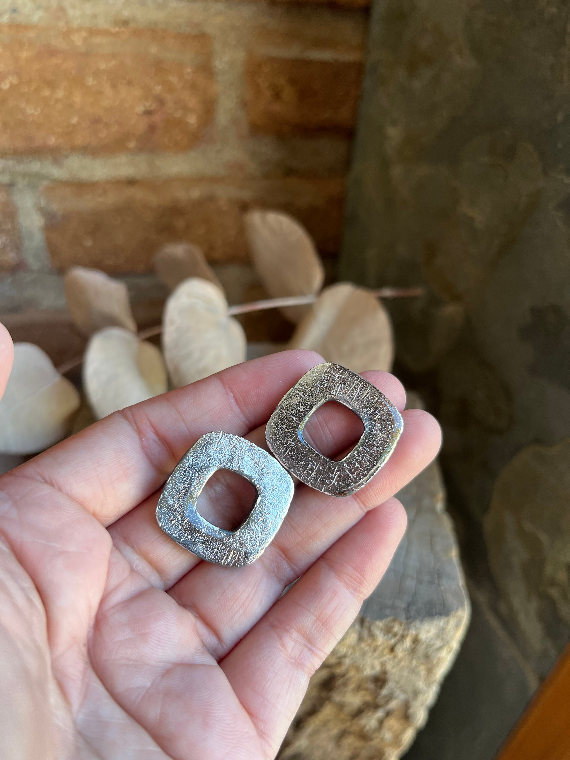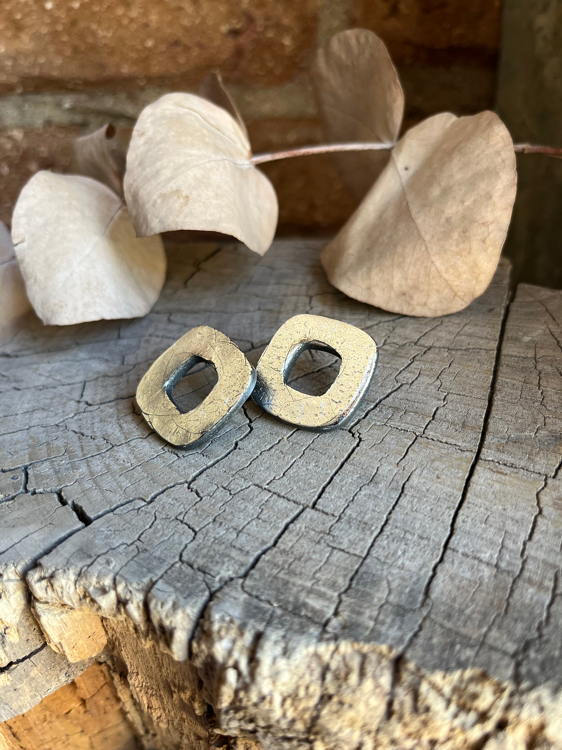 Aros de arcilla polimérica con top coat de resina uv. Miden 2,9 cms. Palito de acero quirúrgico y tope de goma.