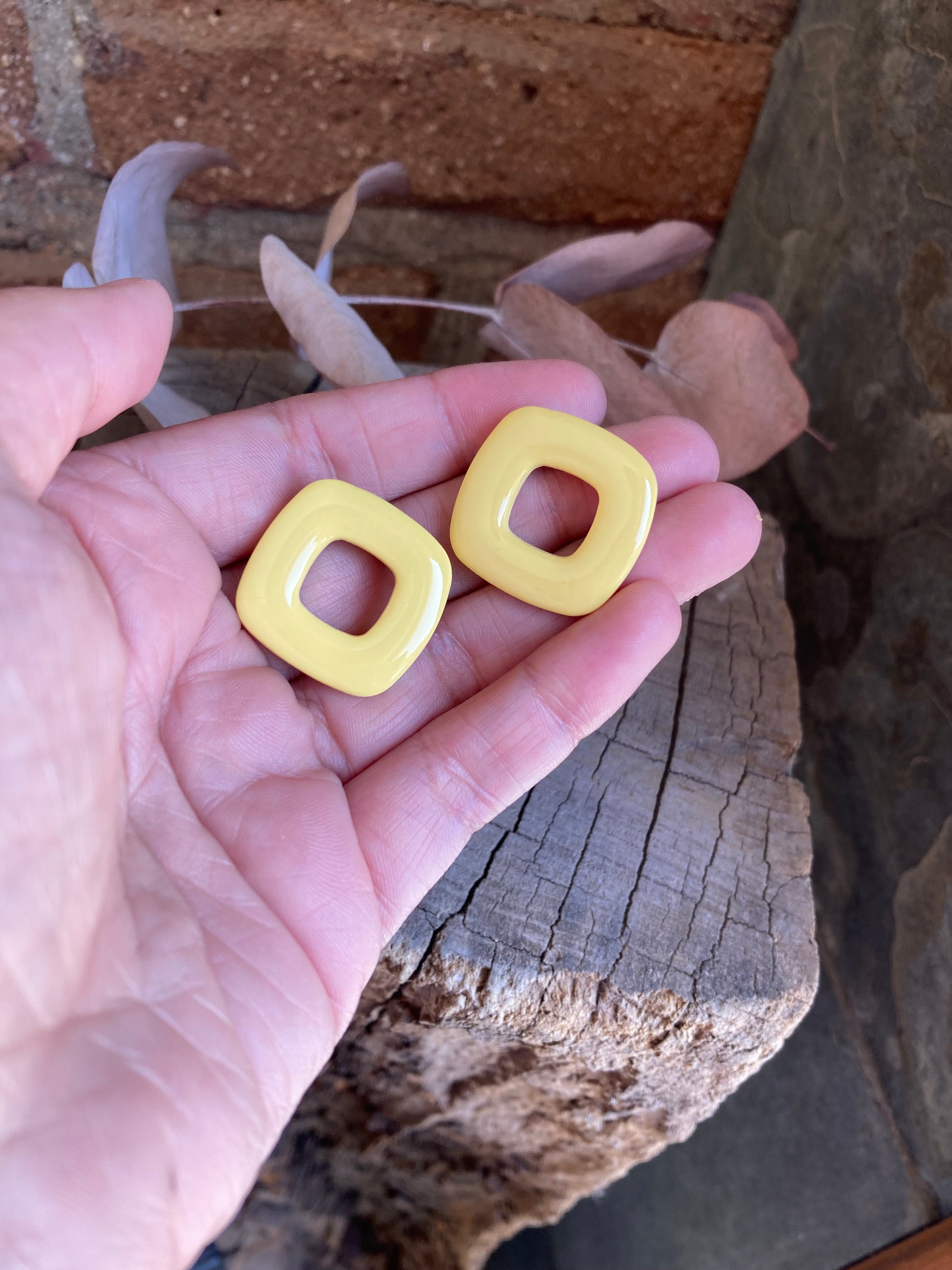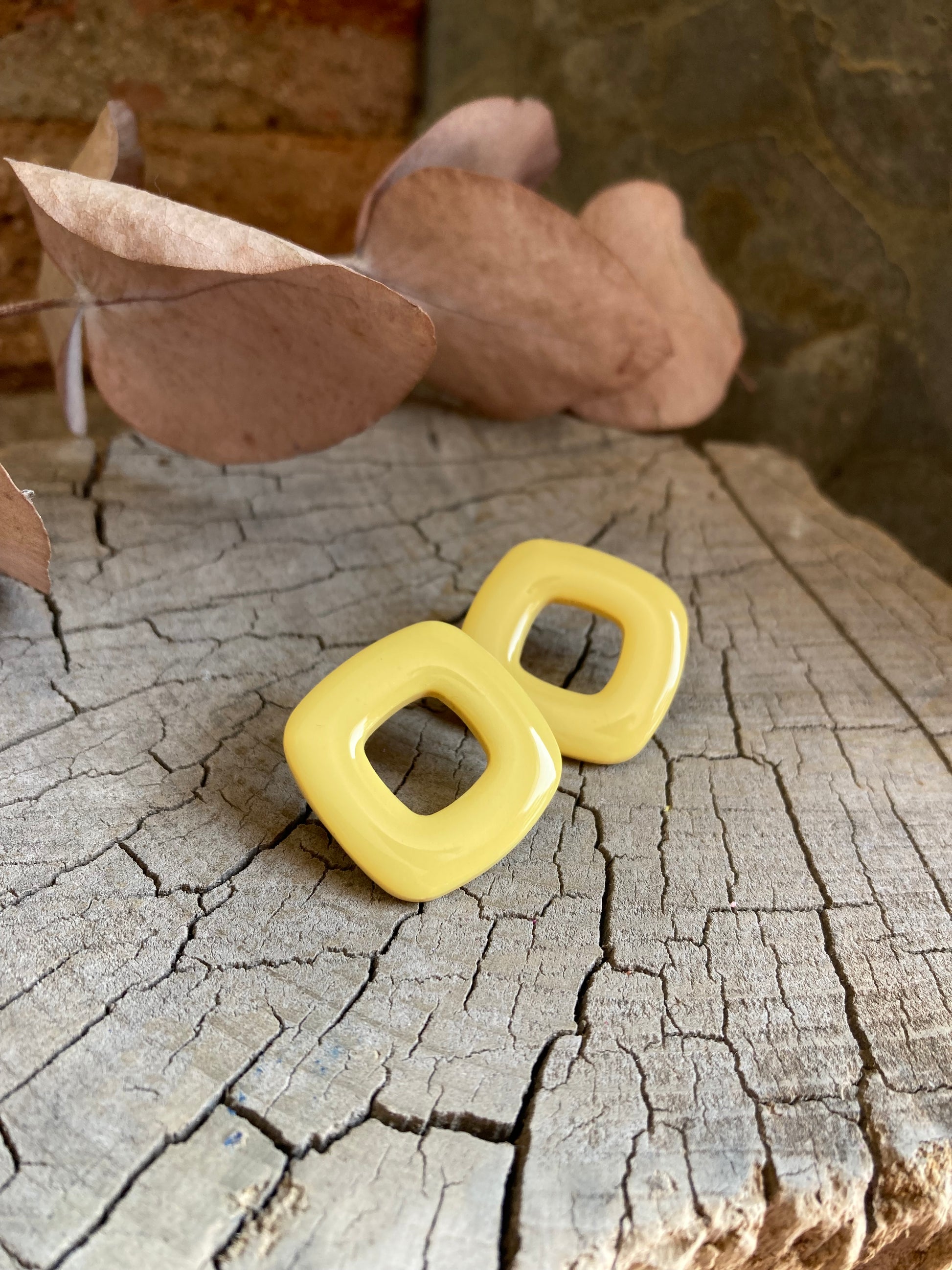 Aros de arcilla polimérica con top coat de resina uv. Miden 2,9 cms. Palito de acero quirúrgico y tope de goma.