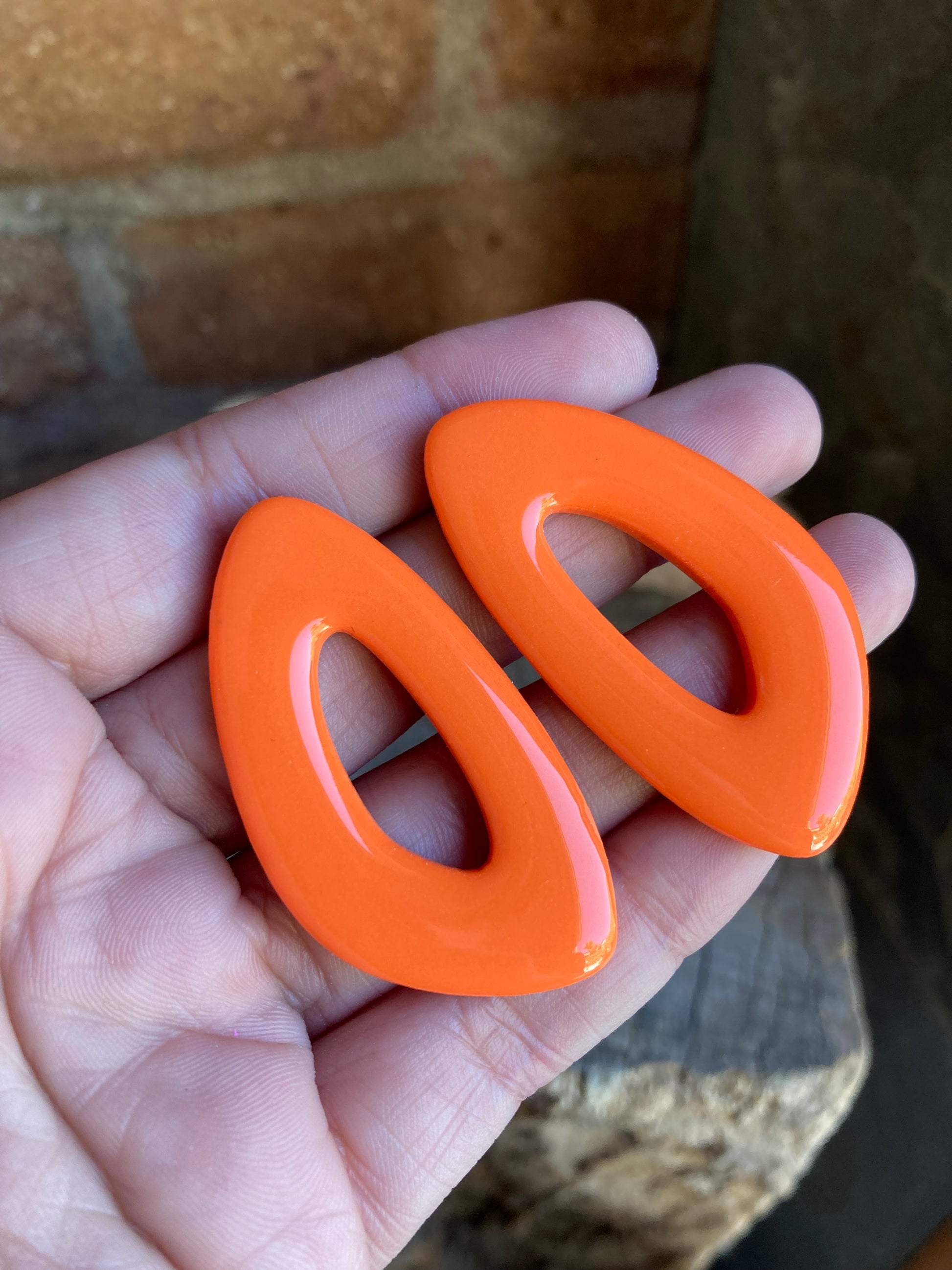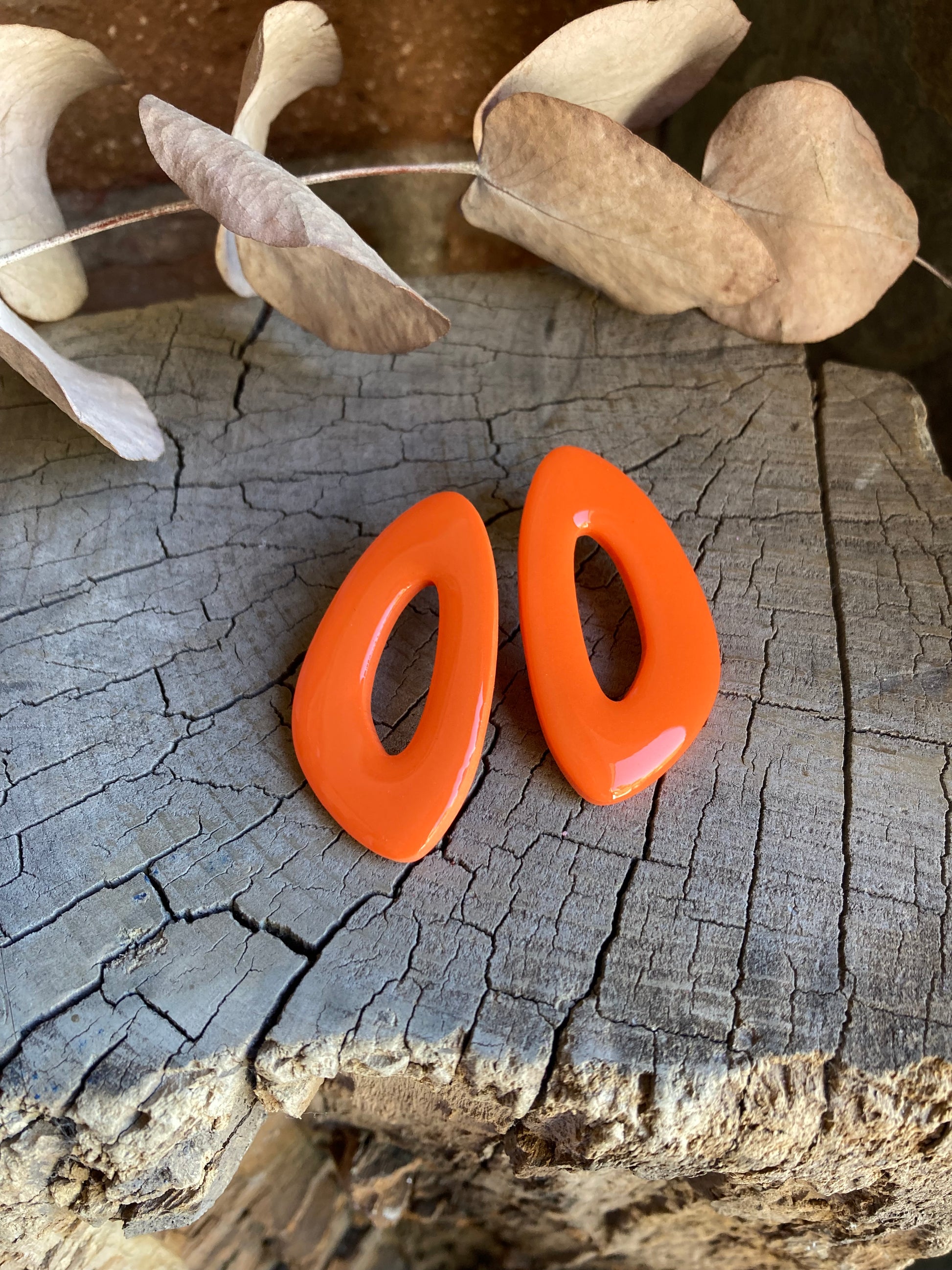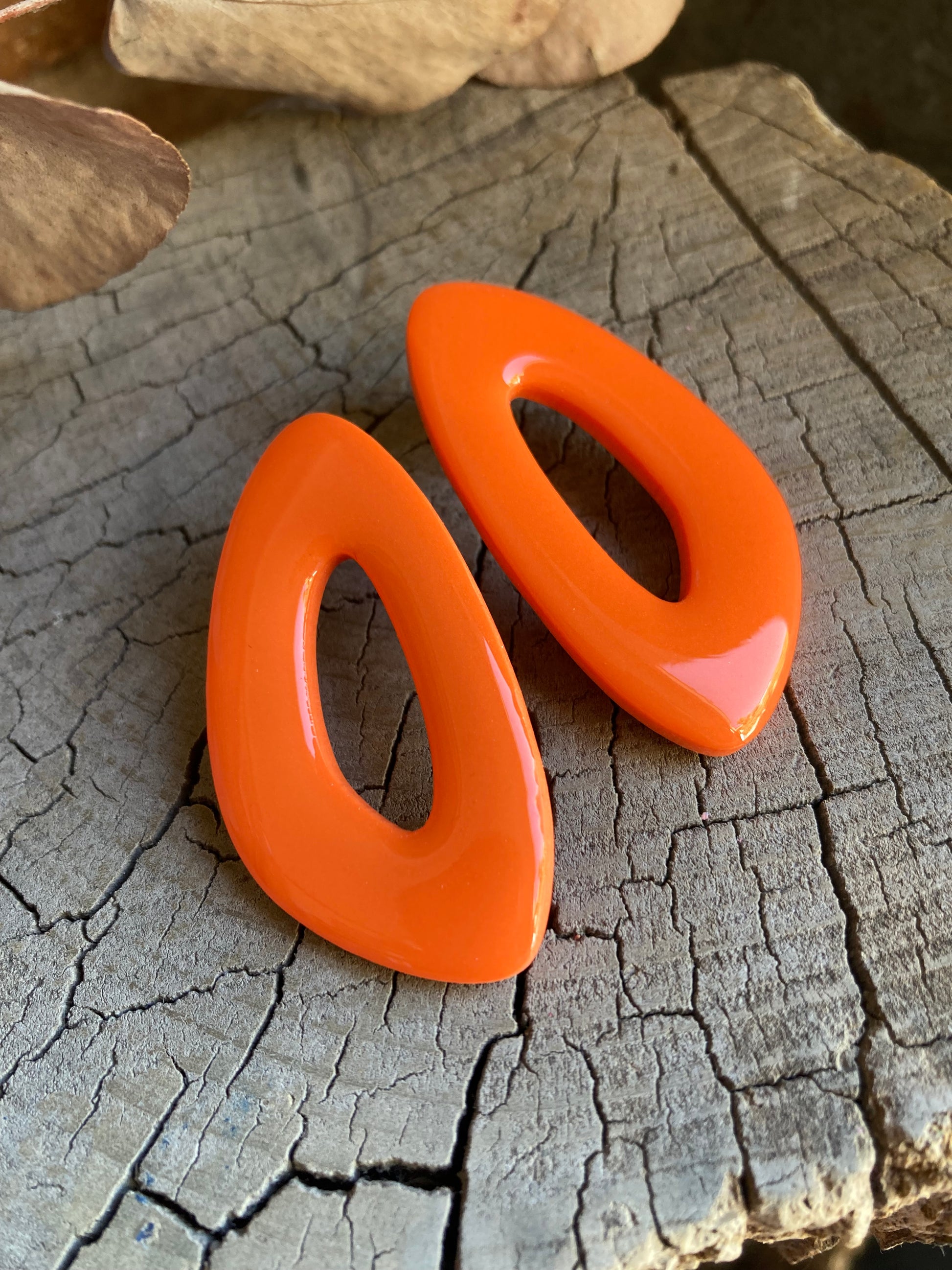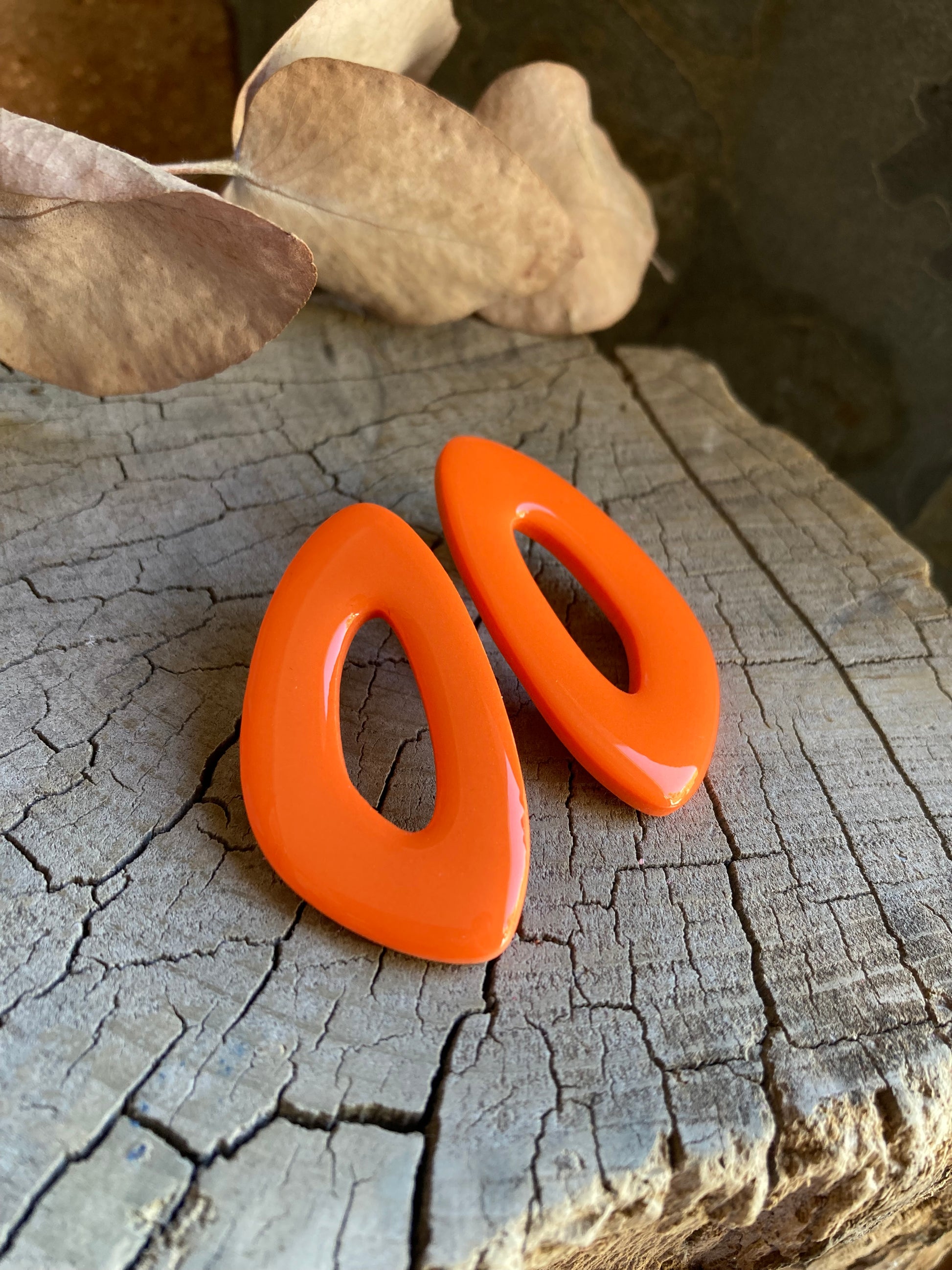 Aros de arcilla polimérica con top coat de resina uv. Miden 5 cms. Palito de acero quirúrgico y tope de goma.