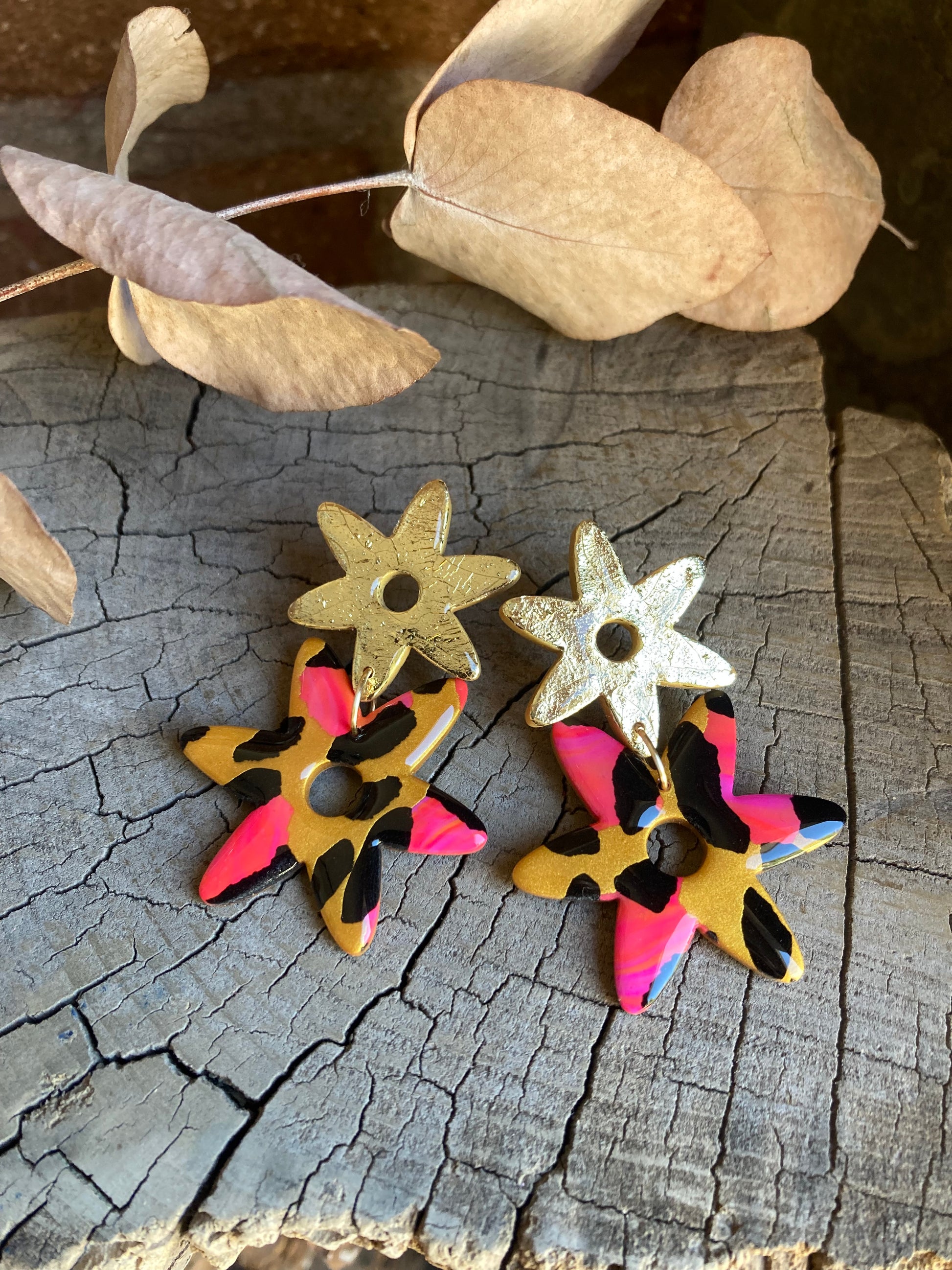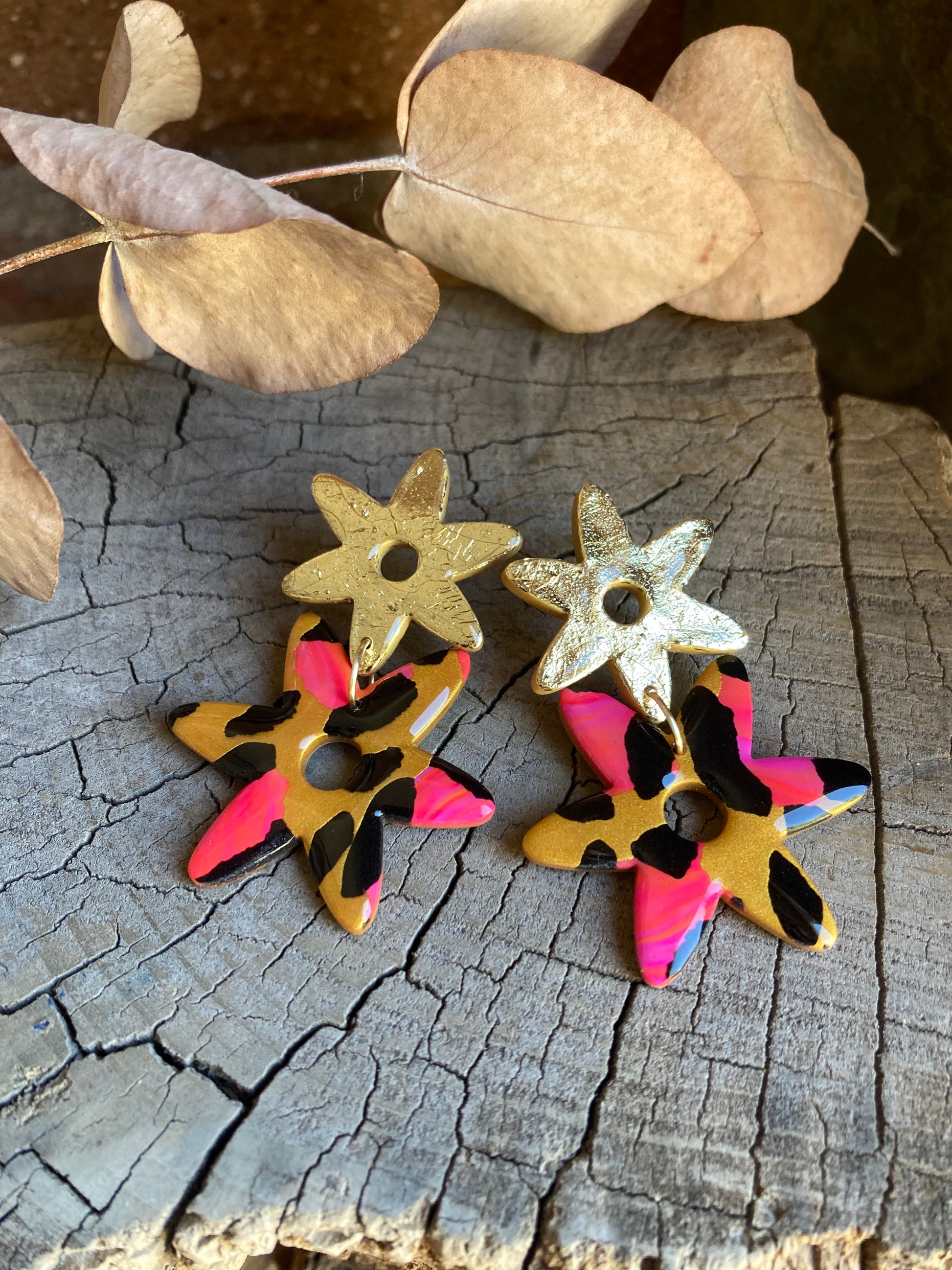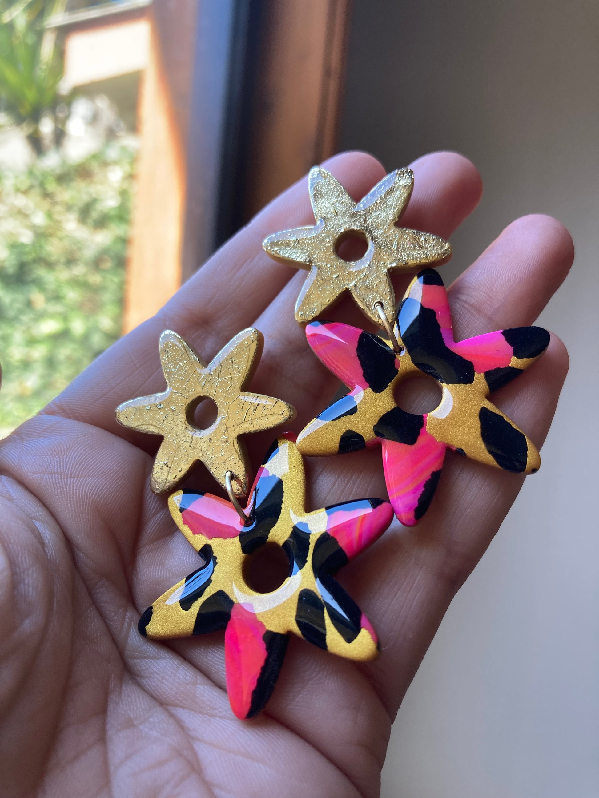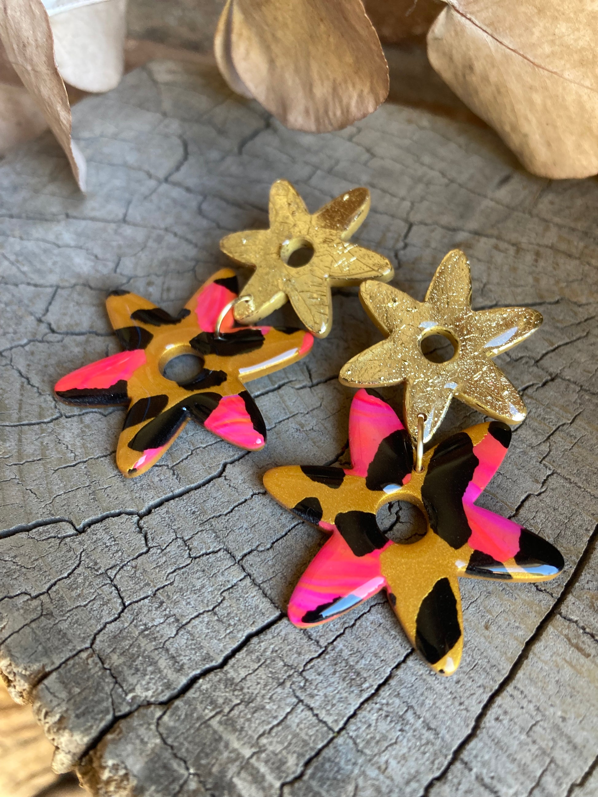 Aros de arcilla polimérica con top coat de resina uv. Miden 5,6 cms. Palito de acero quirúrgico y tope de goma.