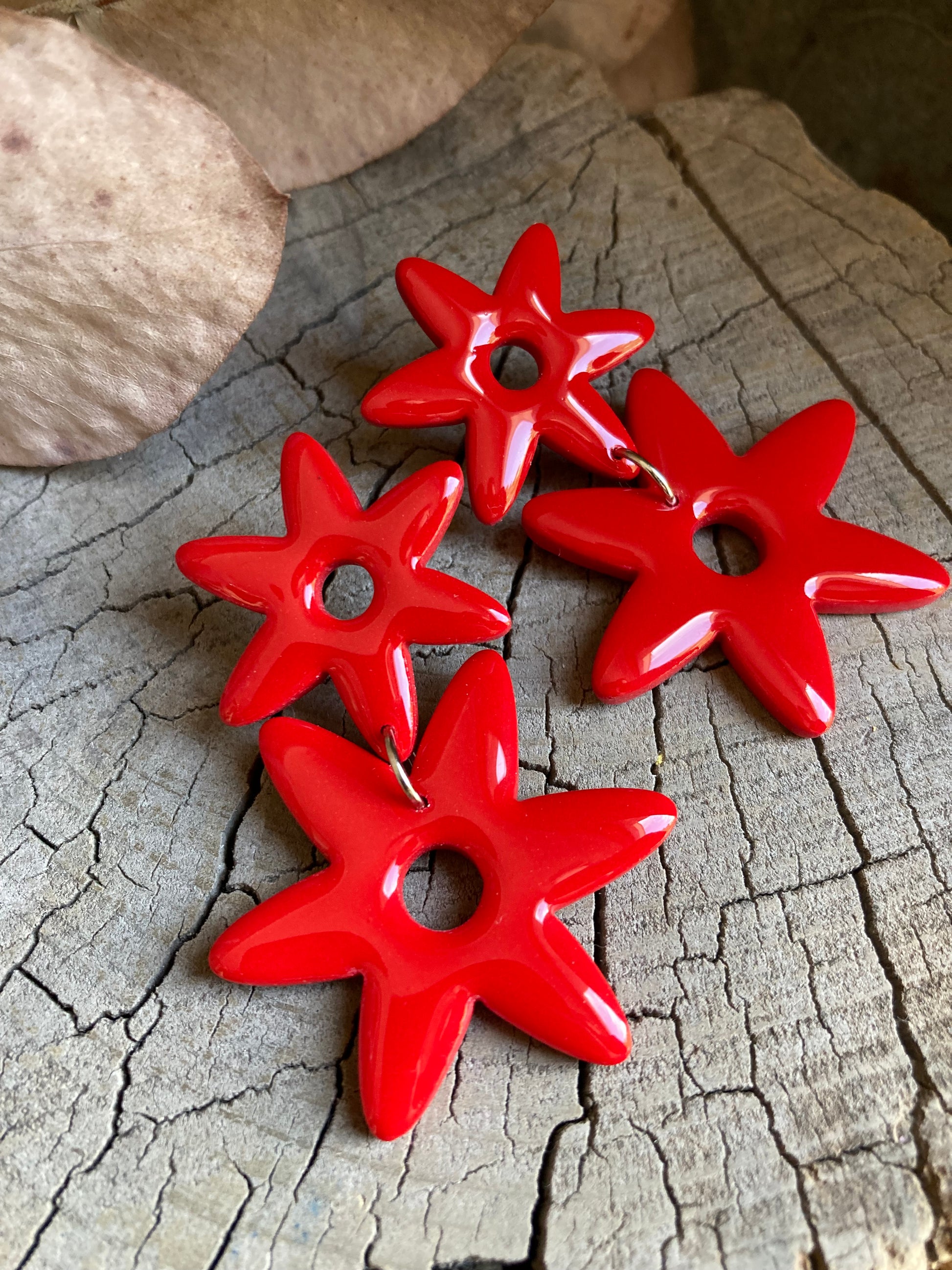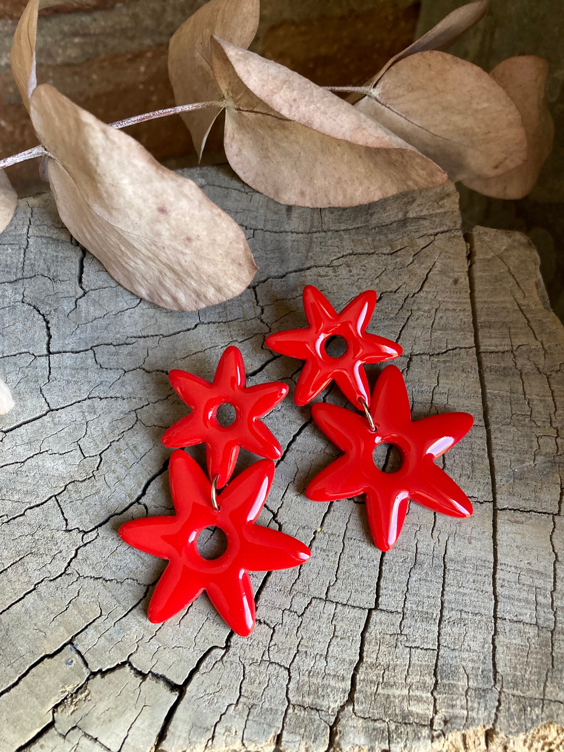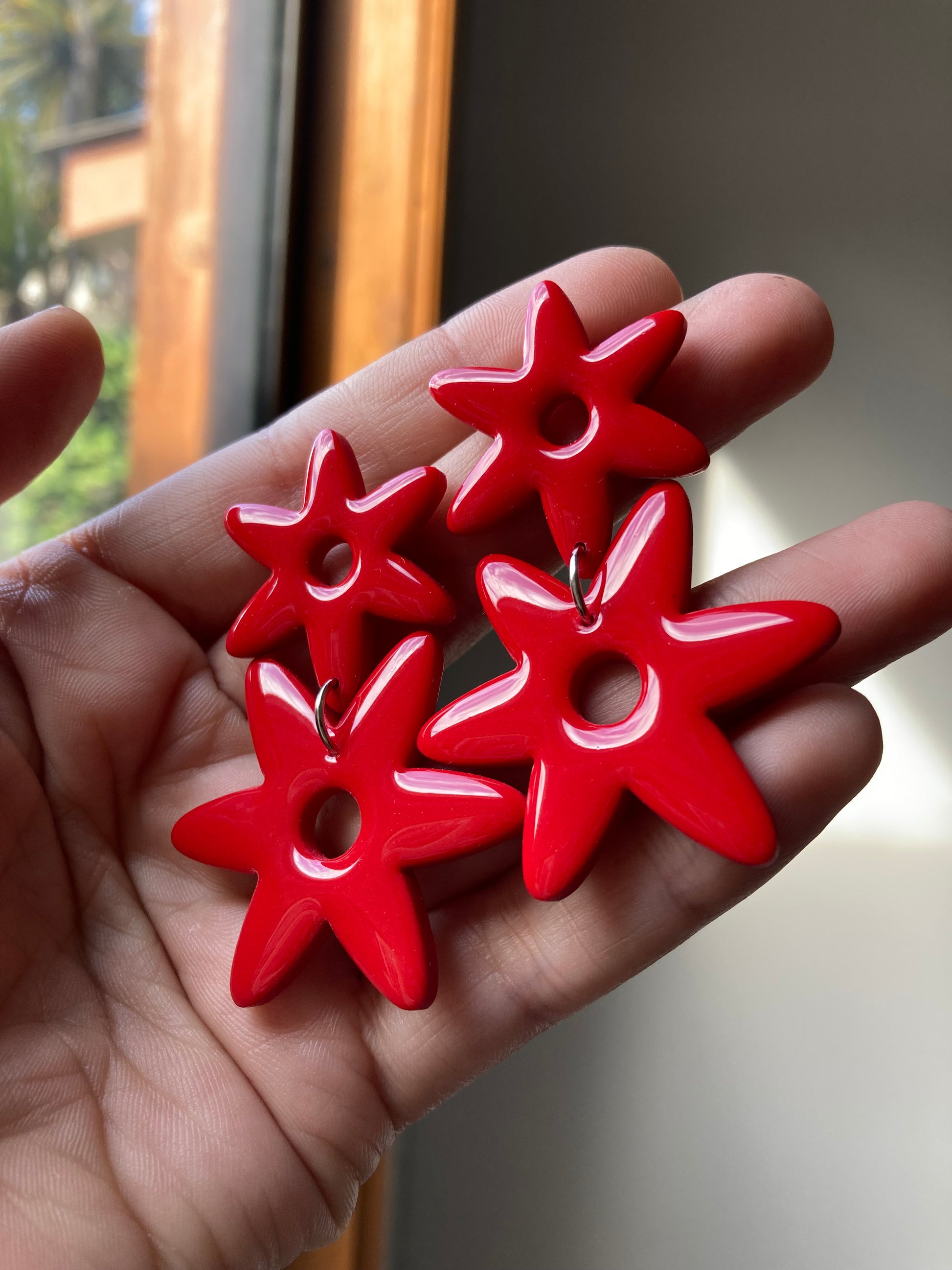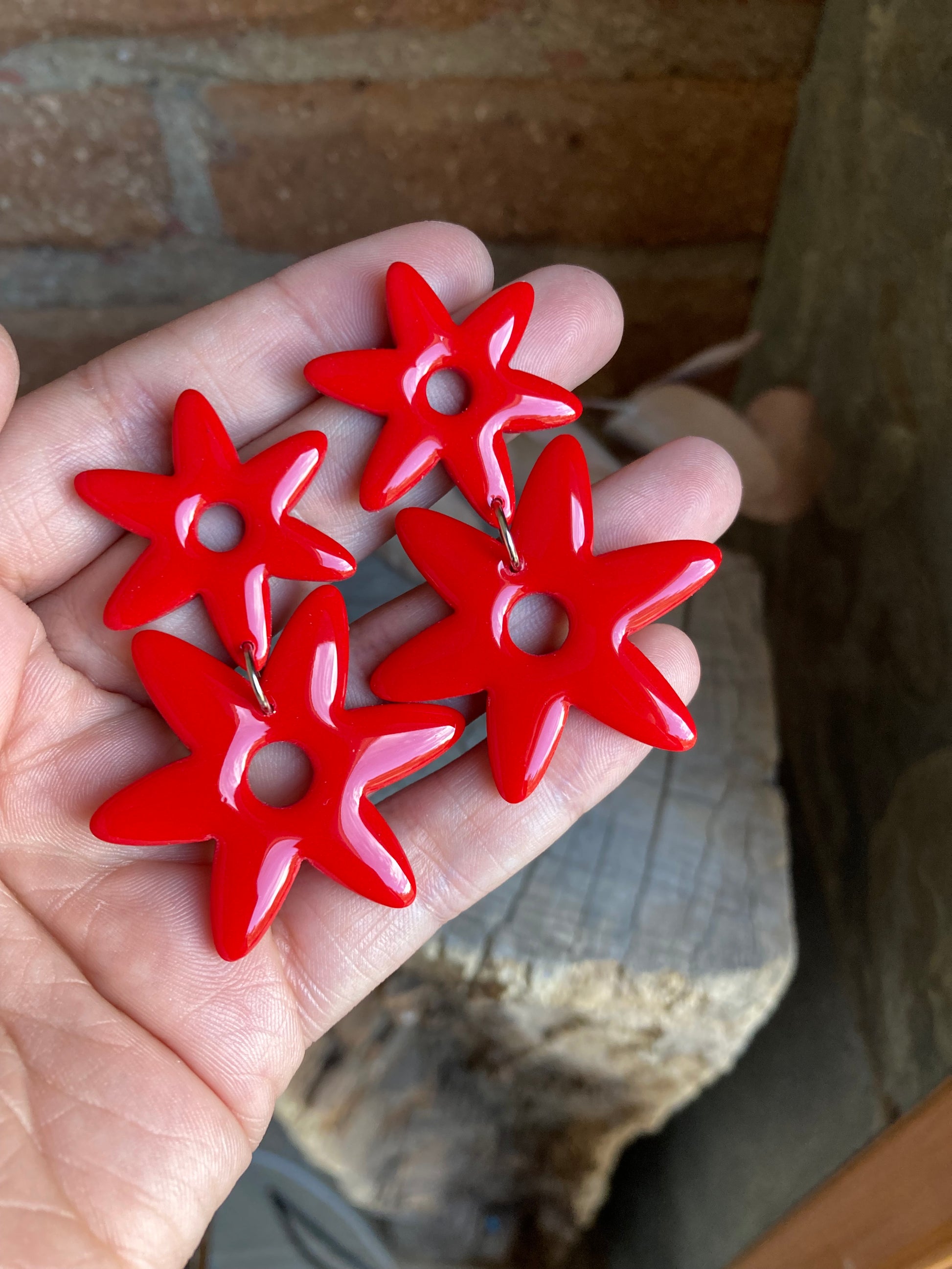 Aros de arcilla polimérica con top coat de resina uv. Miden 5,6 cms. Palito de acero quirúrgico y tope de goma.