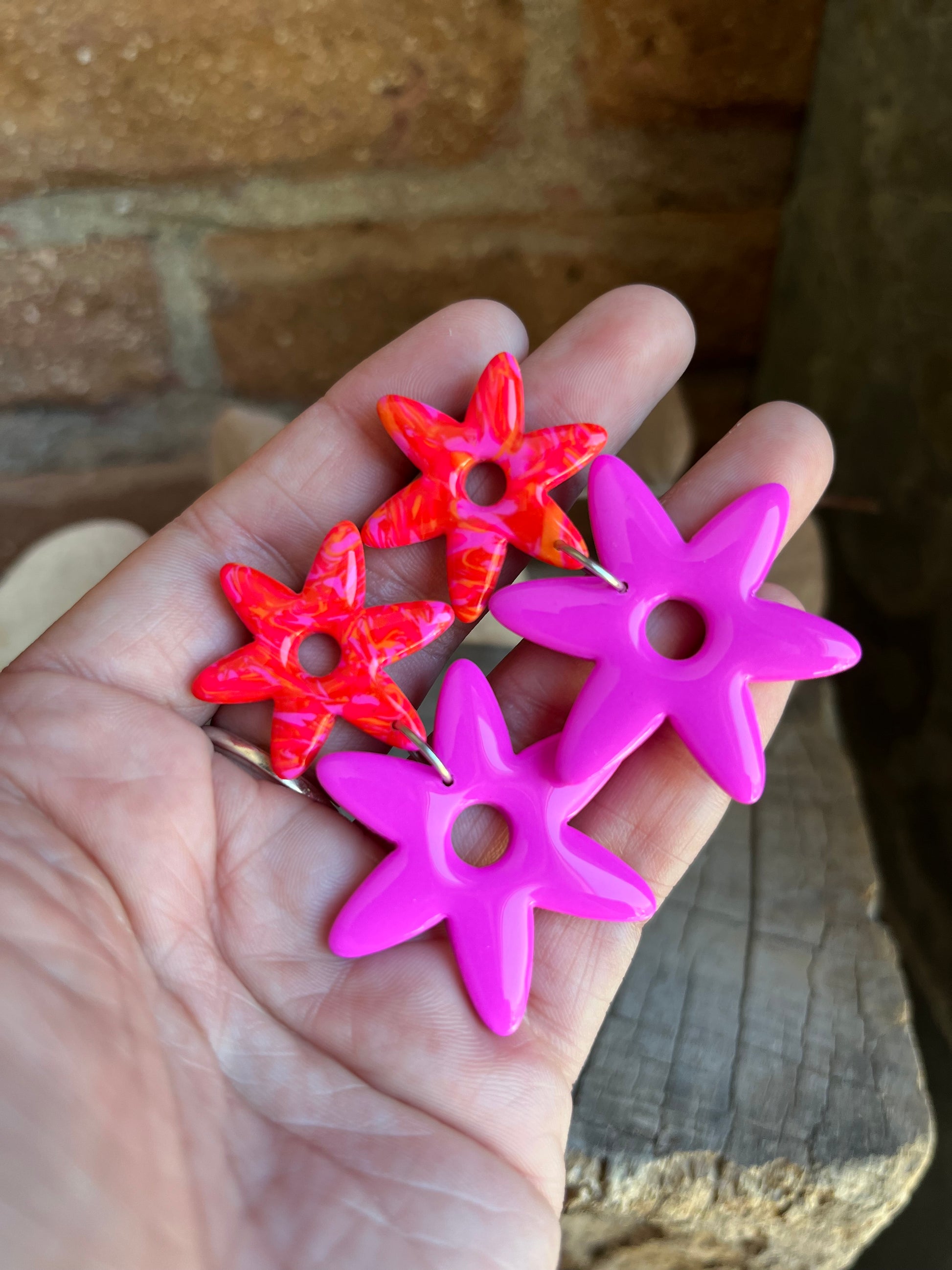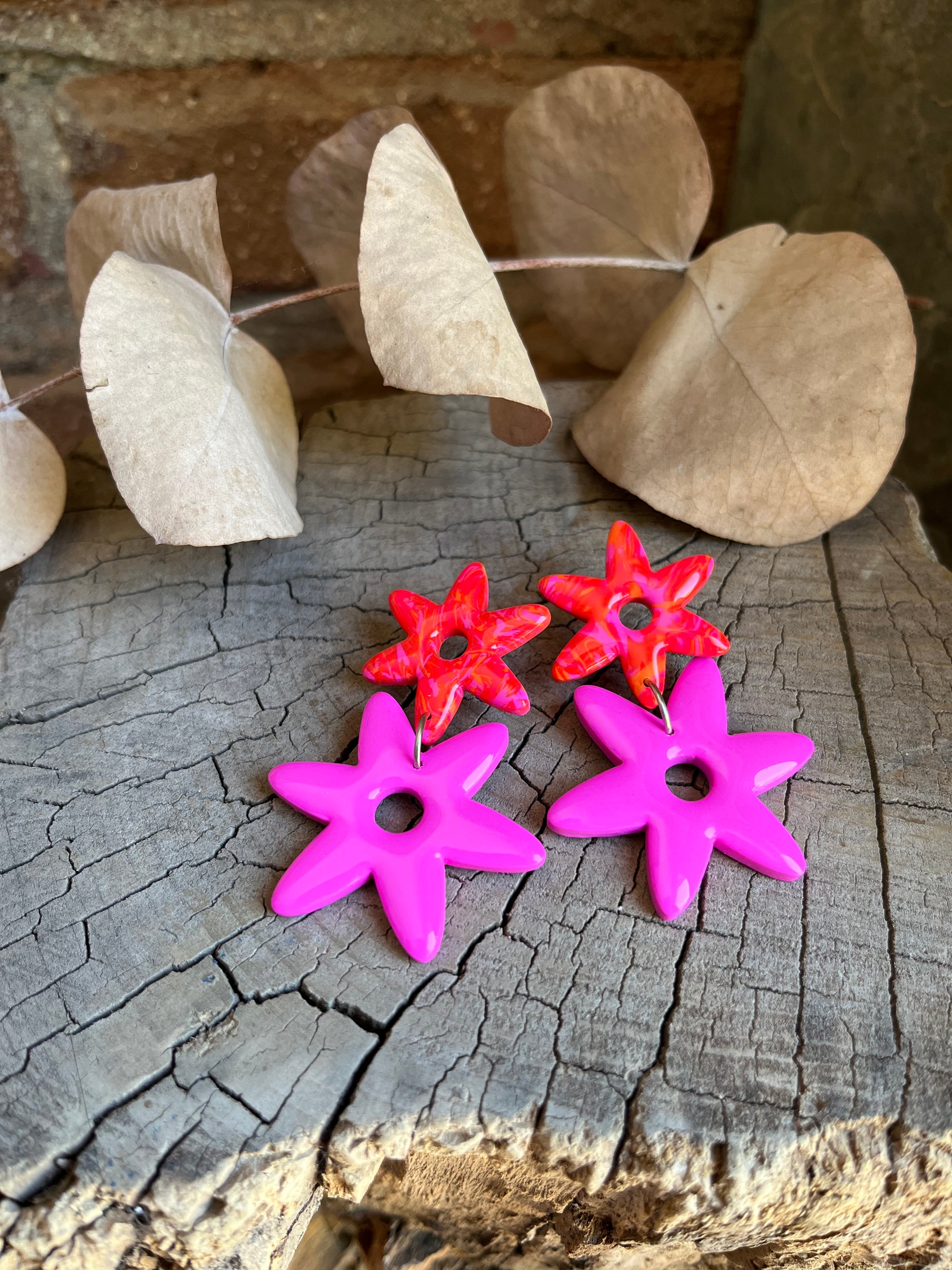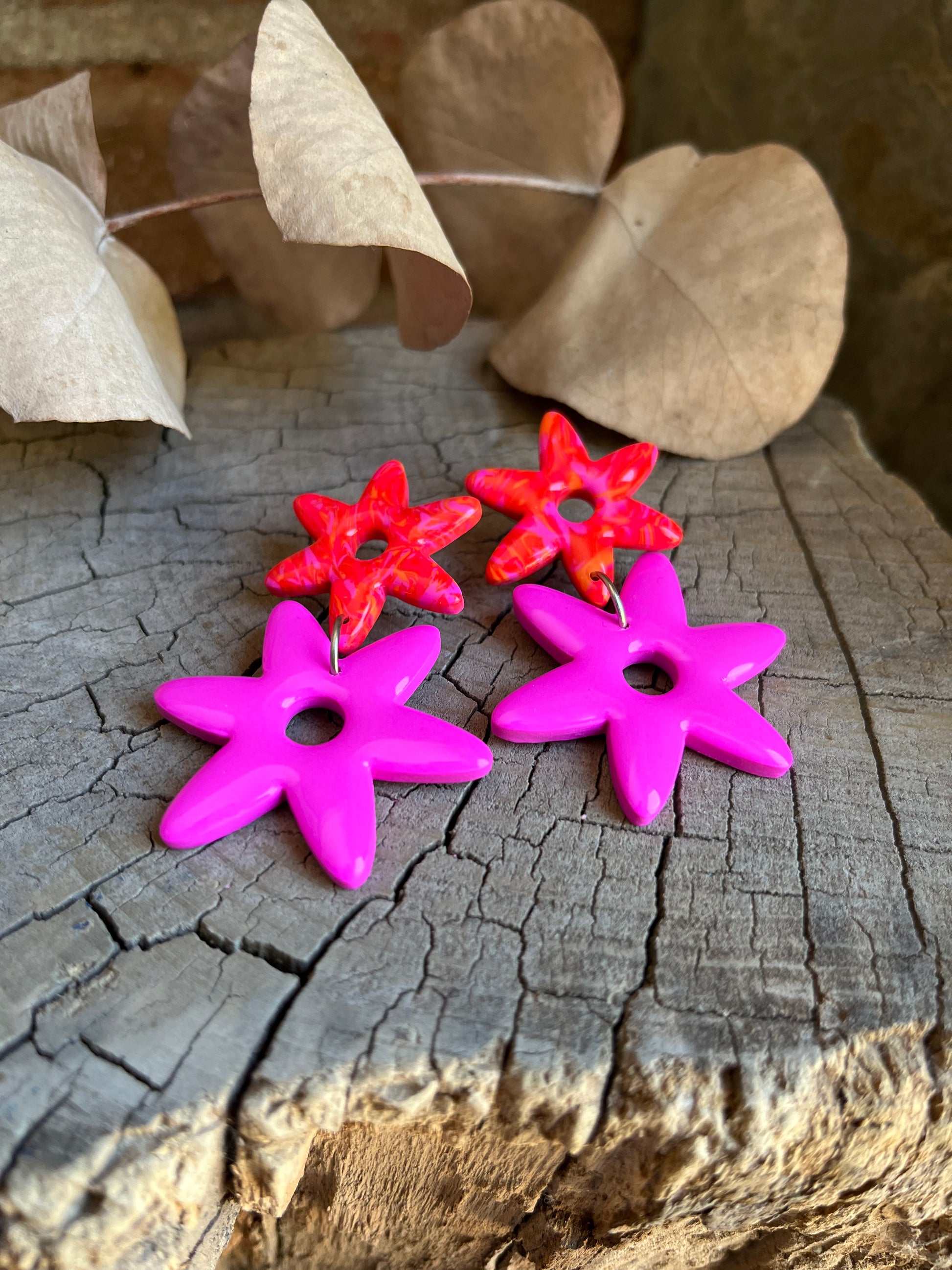 Aros de arcilla polimérica con top coat de resina uv. Miden 5,6 cms. Palito de acero quirúrgico y tope de goma.