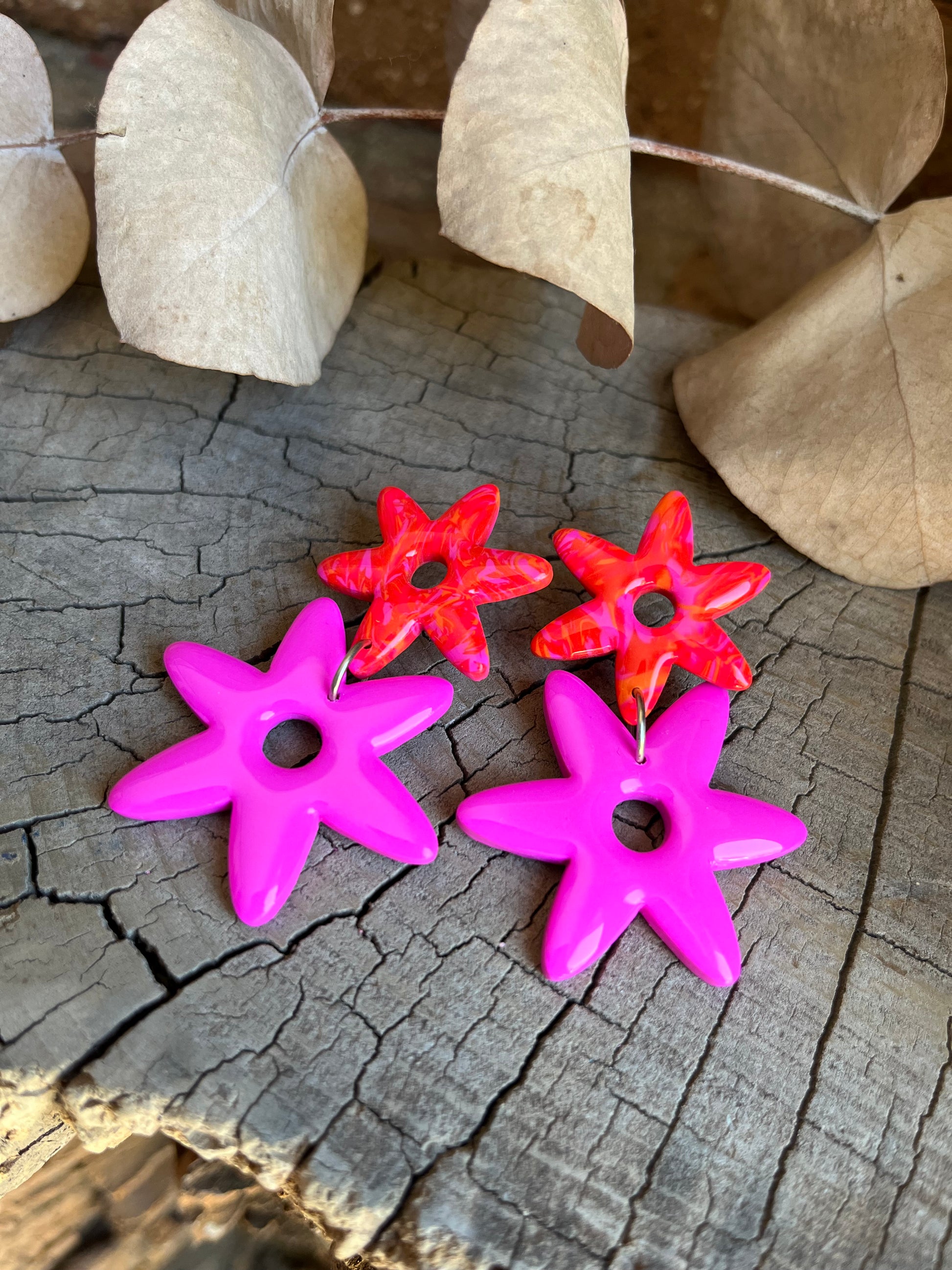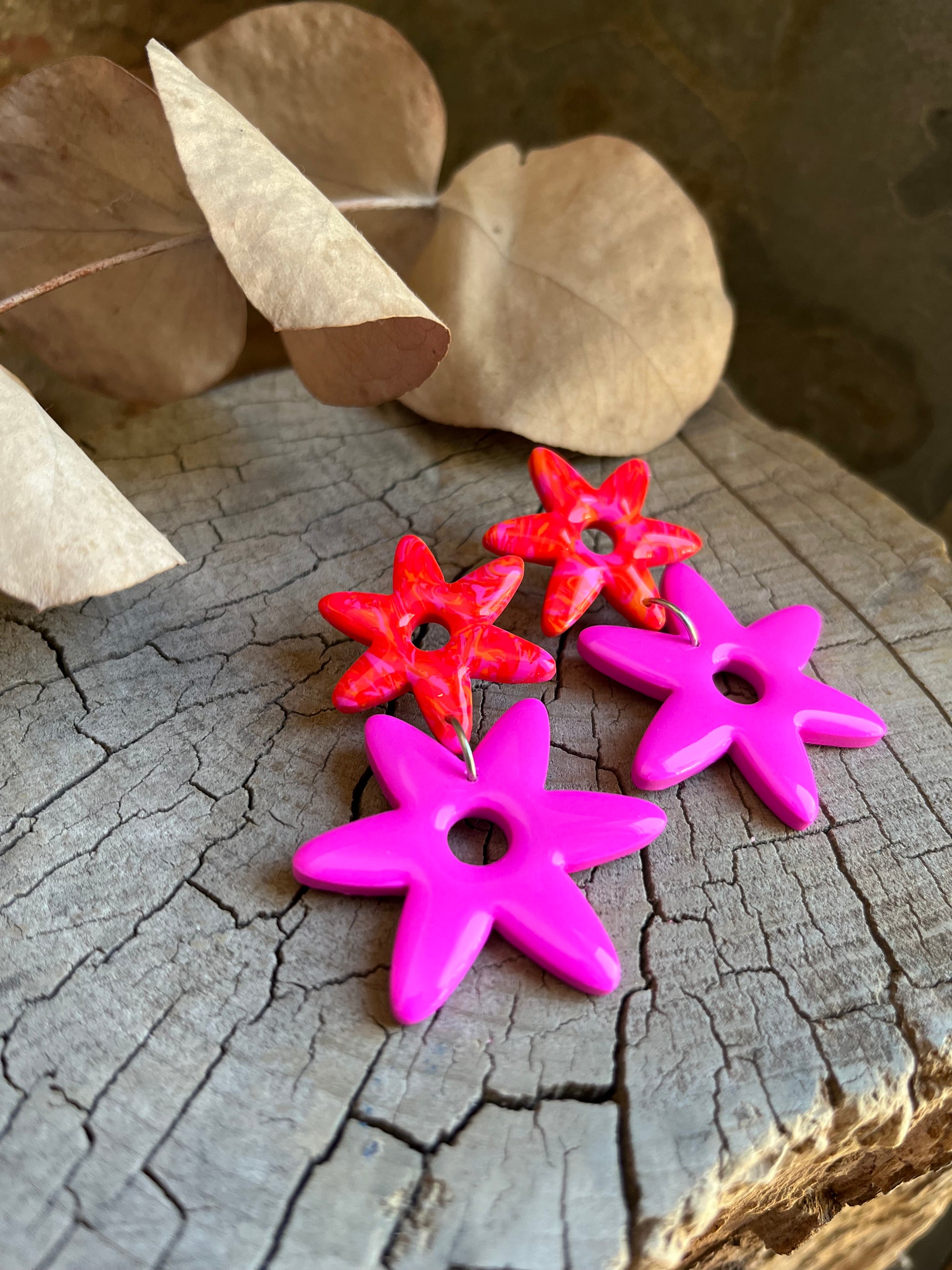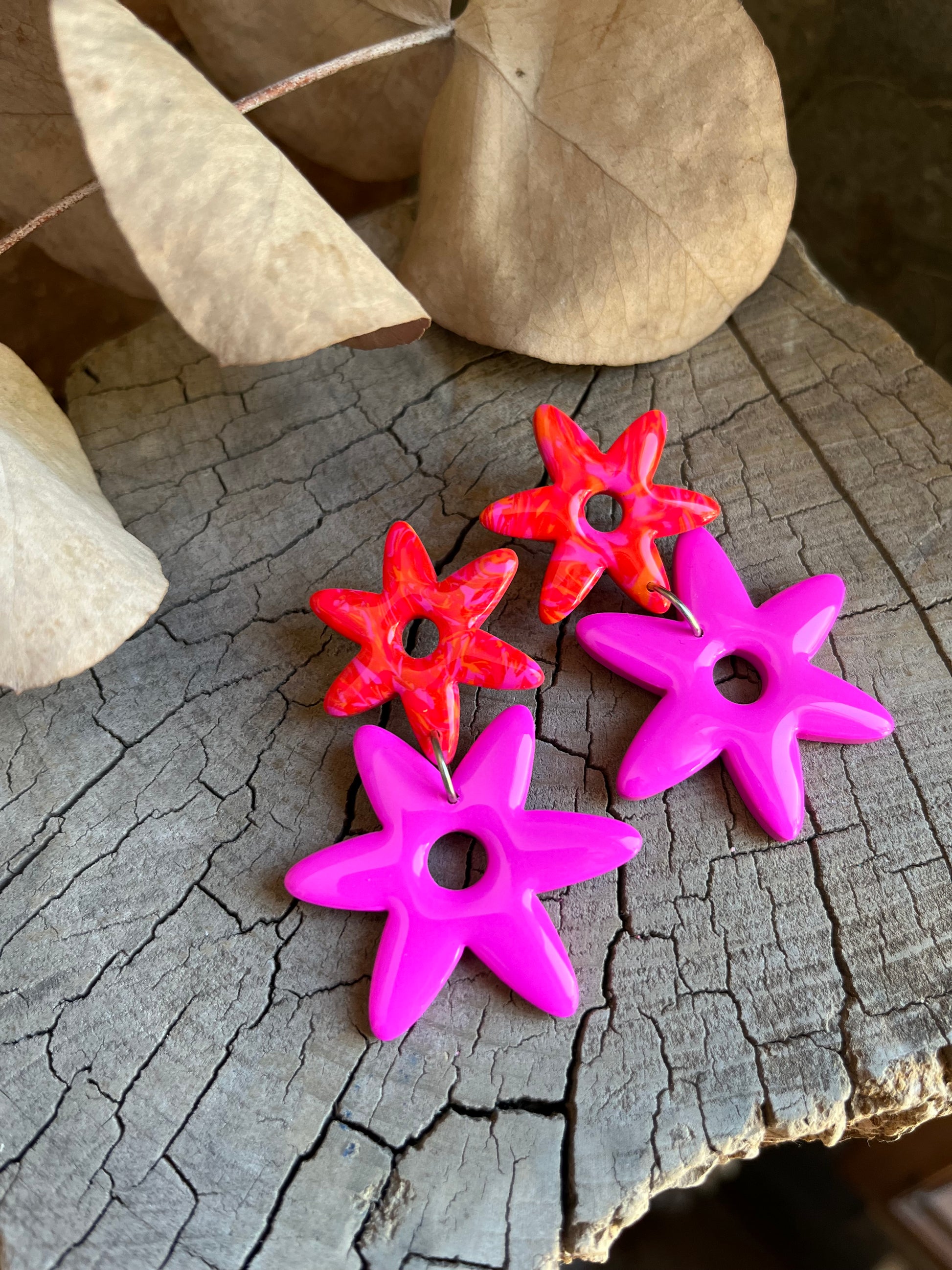 Aros de arcilla polimérica con top coat de resina uv. Miden 5,6 cms. Palito de acero quirúrgico y tope de goma.