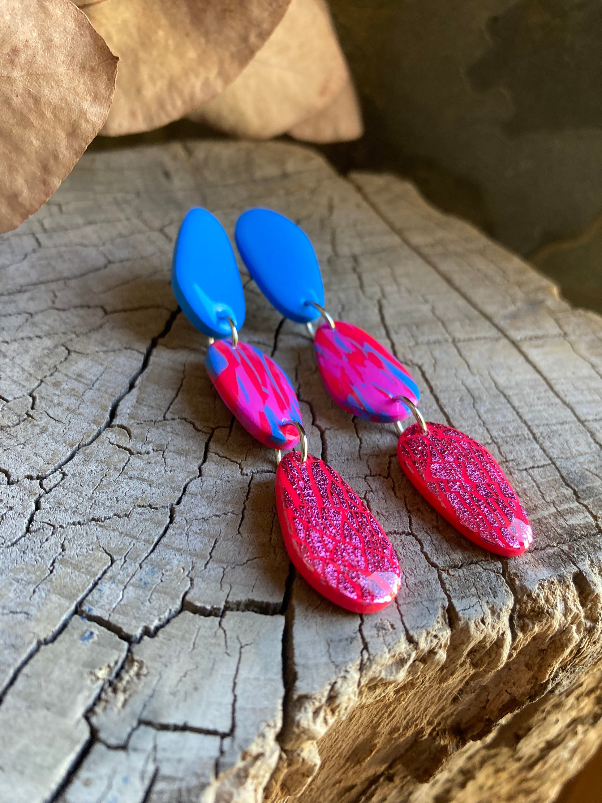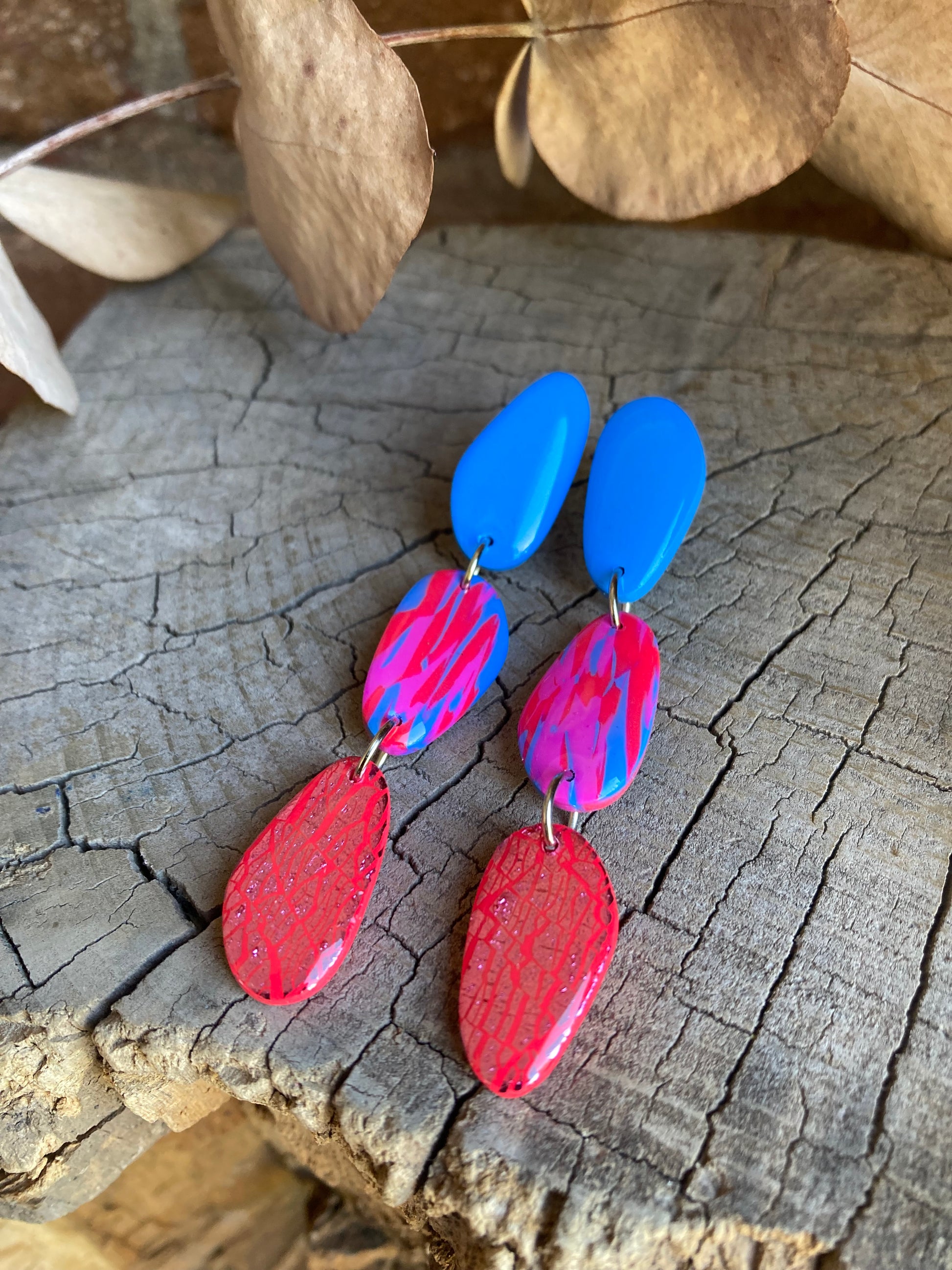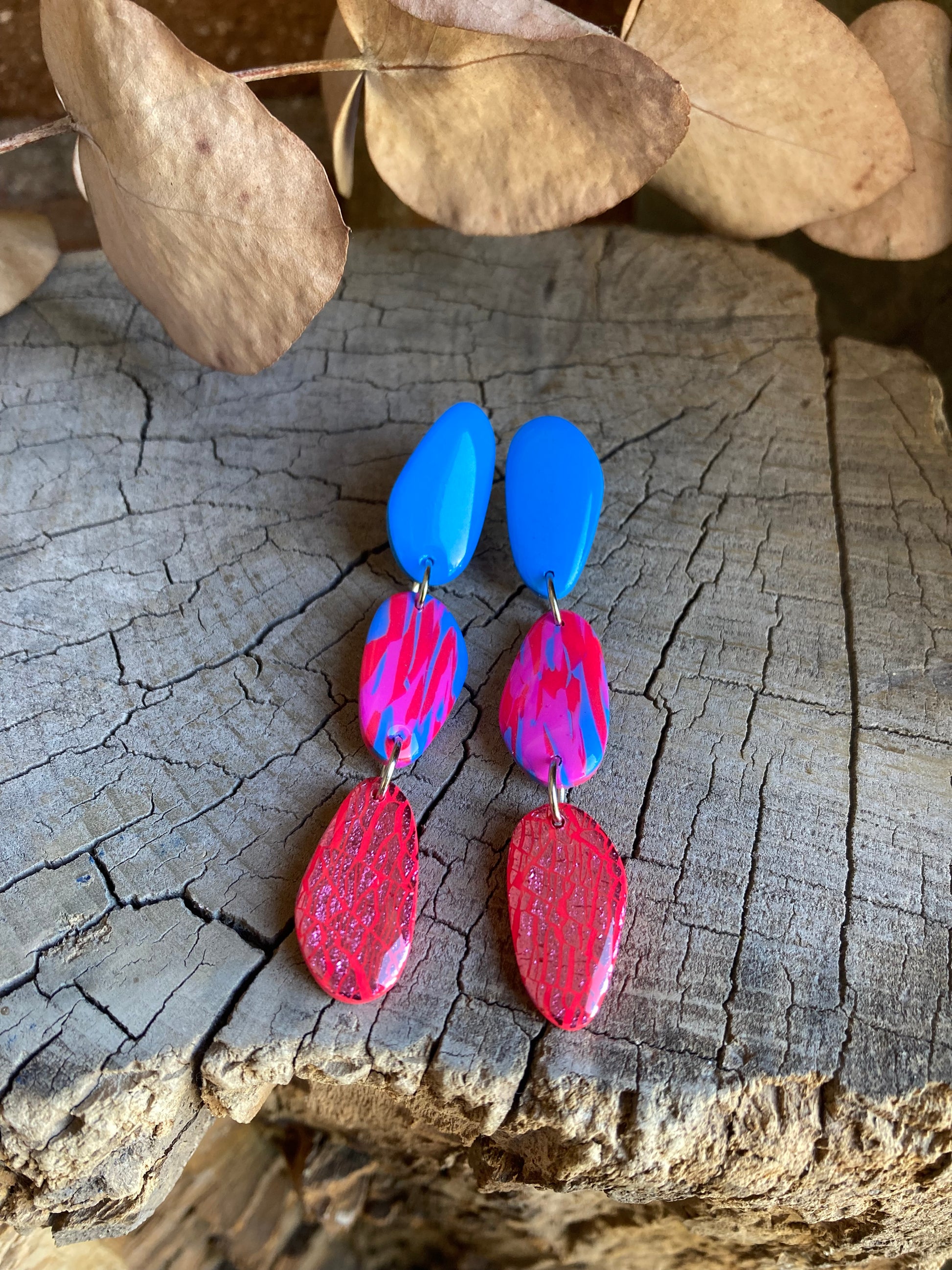 Aros de arcilla polimérica con top coat de resina uv. Miden 7,5 cms. Palito de acero quirúrgico y tope de goma.