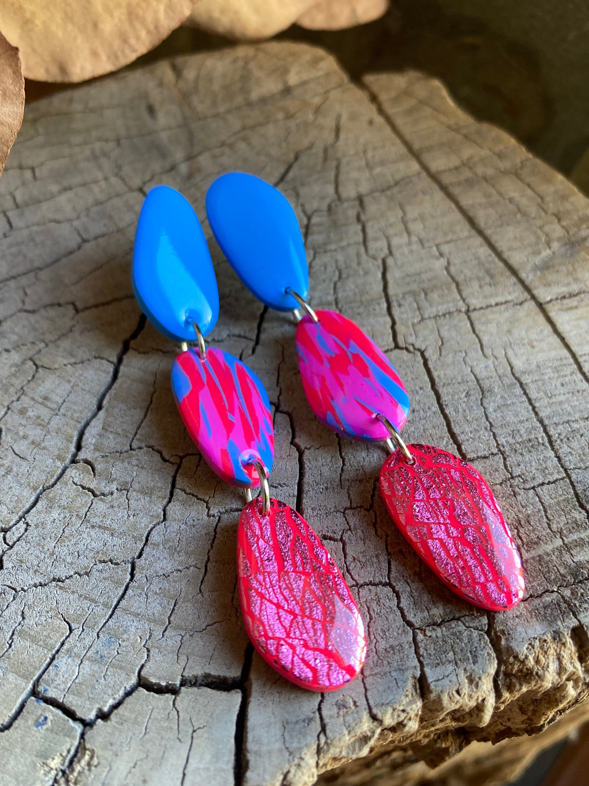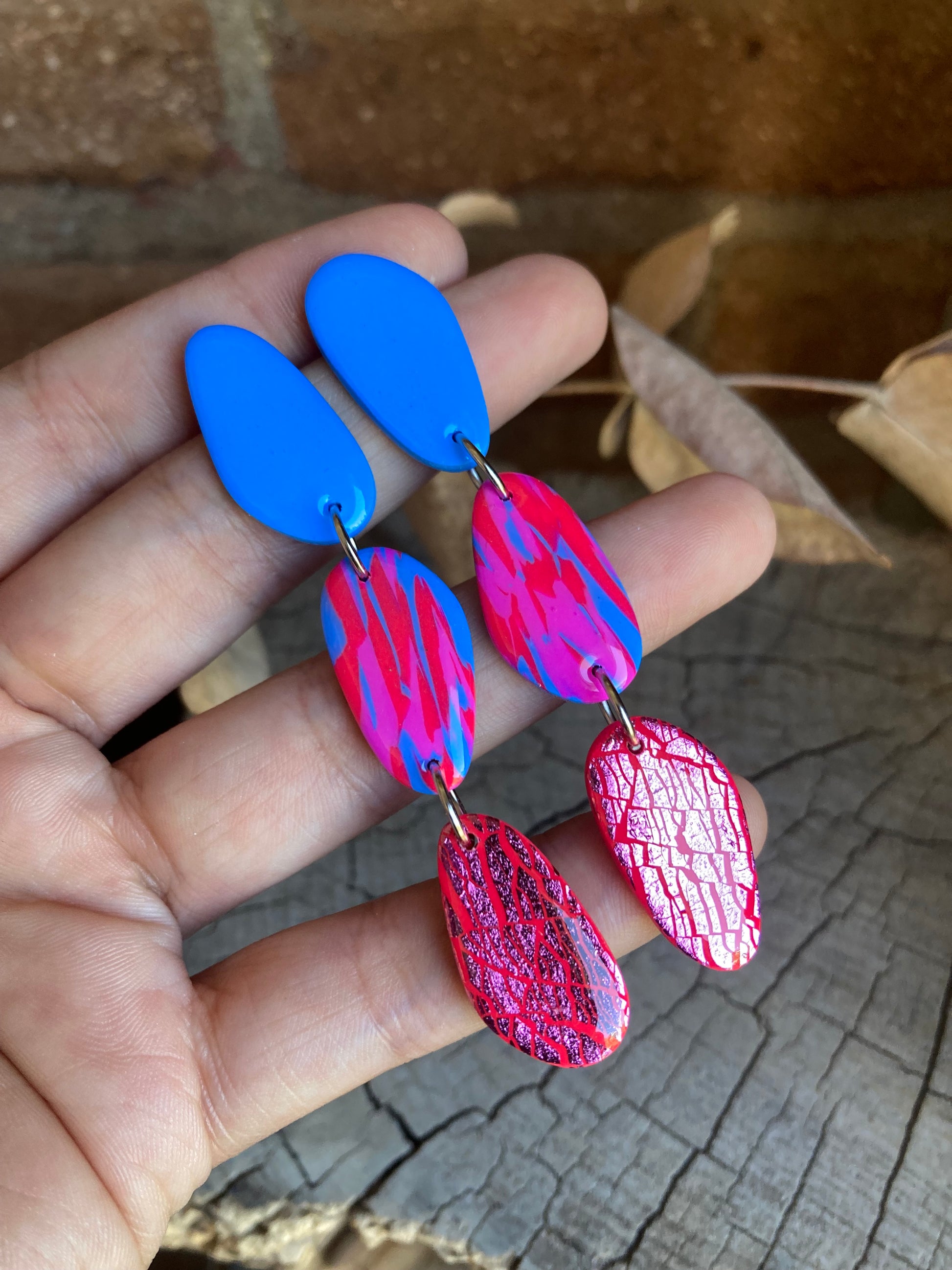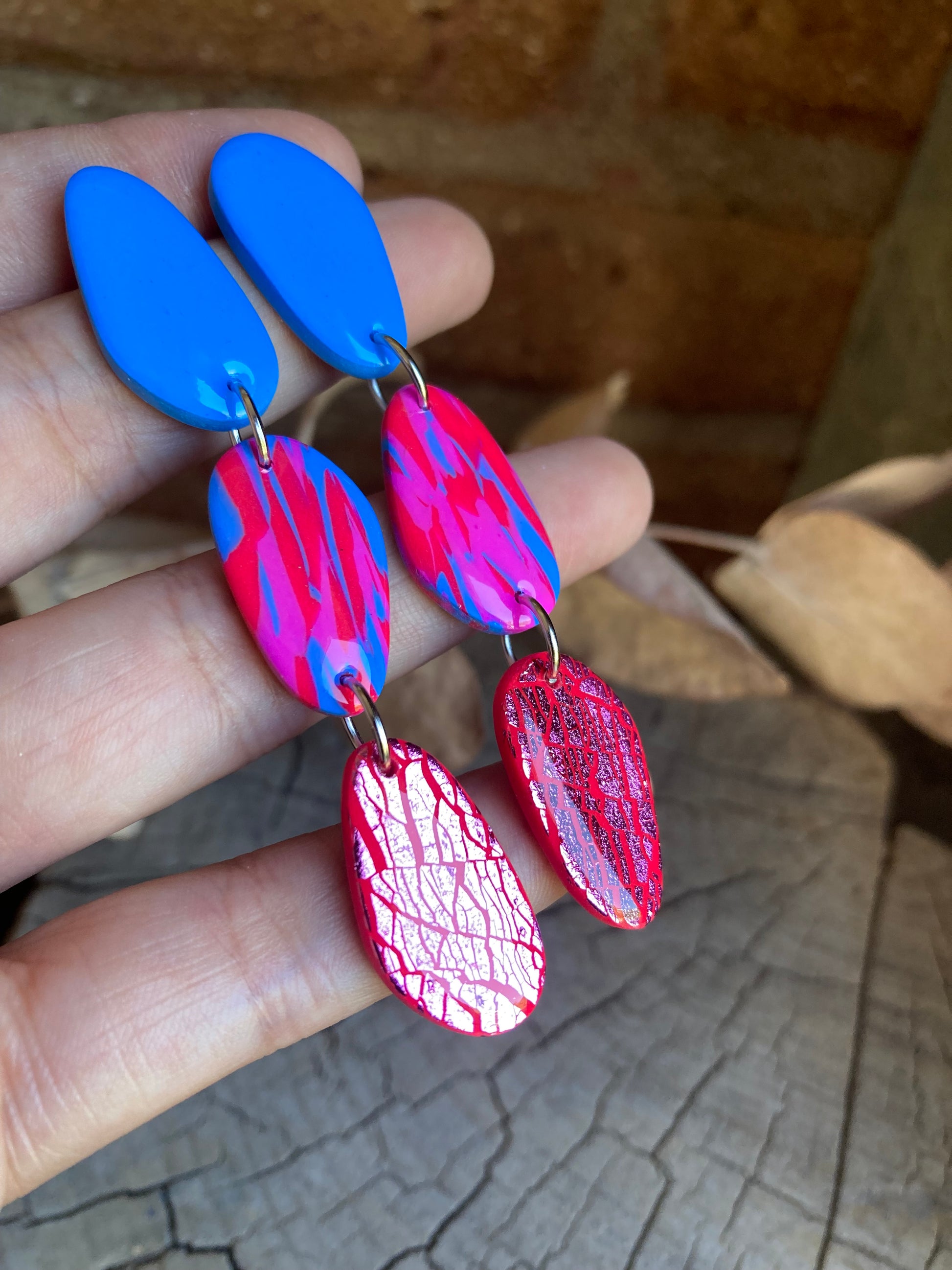 Aros de arcilla polimérica con top coat de resina uv. Miden 7,5 cms. Palito de acero quirúrgico y tope de goma.